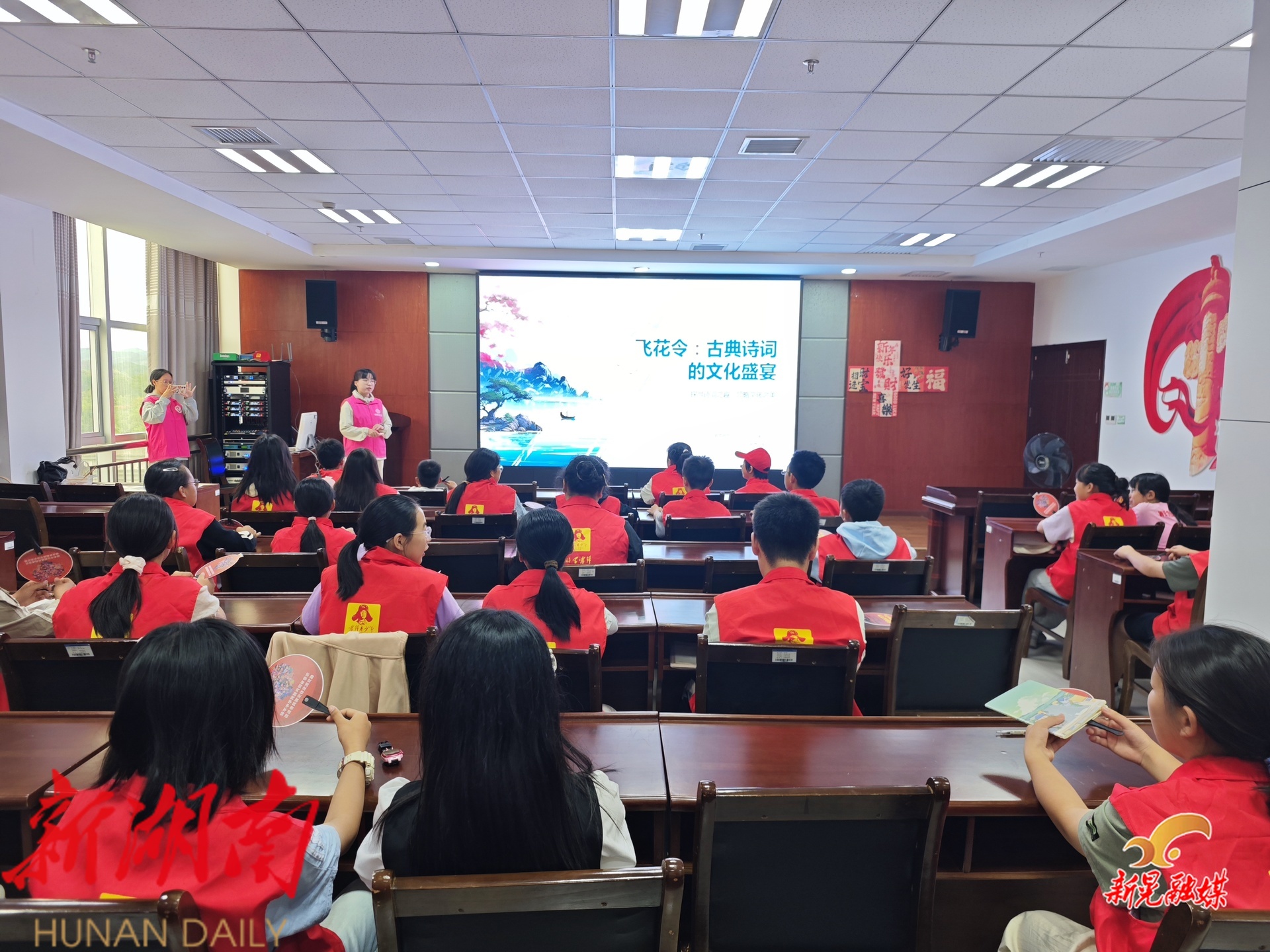 新晃融媒9月21日讯(记者: 杨清廉 )9月20日,县图书馆联合团县委 、县同心公益举办“飞花令:古典诗词的文化盛宴”主题活动。活动以中华古典诗词为载体,通过趣味互动、文化讲解和创意表达,带来了一场沉浸式的传统文化体验,吸引了众多青少年参与。
