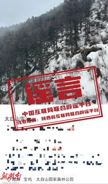 真相: 近日,有网民发帖称“陕西太白山迎来今秋第一场大雪”,并晒出视频画面,山林间白雪纷飞,屋檐上覆盖着薄雪。相关视频引发关注,有网民表示立即前往景区赏雪。对此,景区工作人员回应称,网传视频为往年下雪场景,目前太白山正在下大雨,景区已经关闭。提醒游客出行前应关注景区的实时公告与天气情况,以免受虚假信息误导。(来源:陕西省互联网联合辟谣平台、@上游新闻)