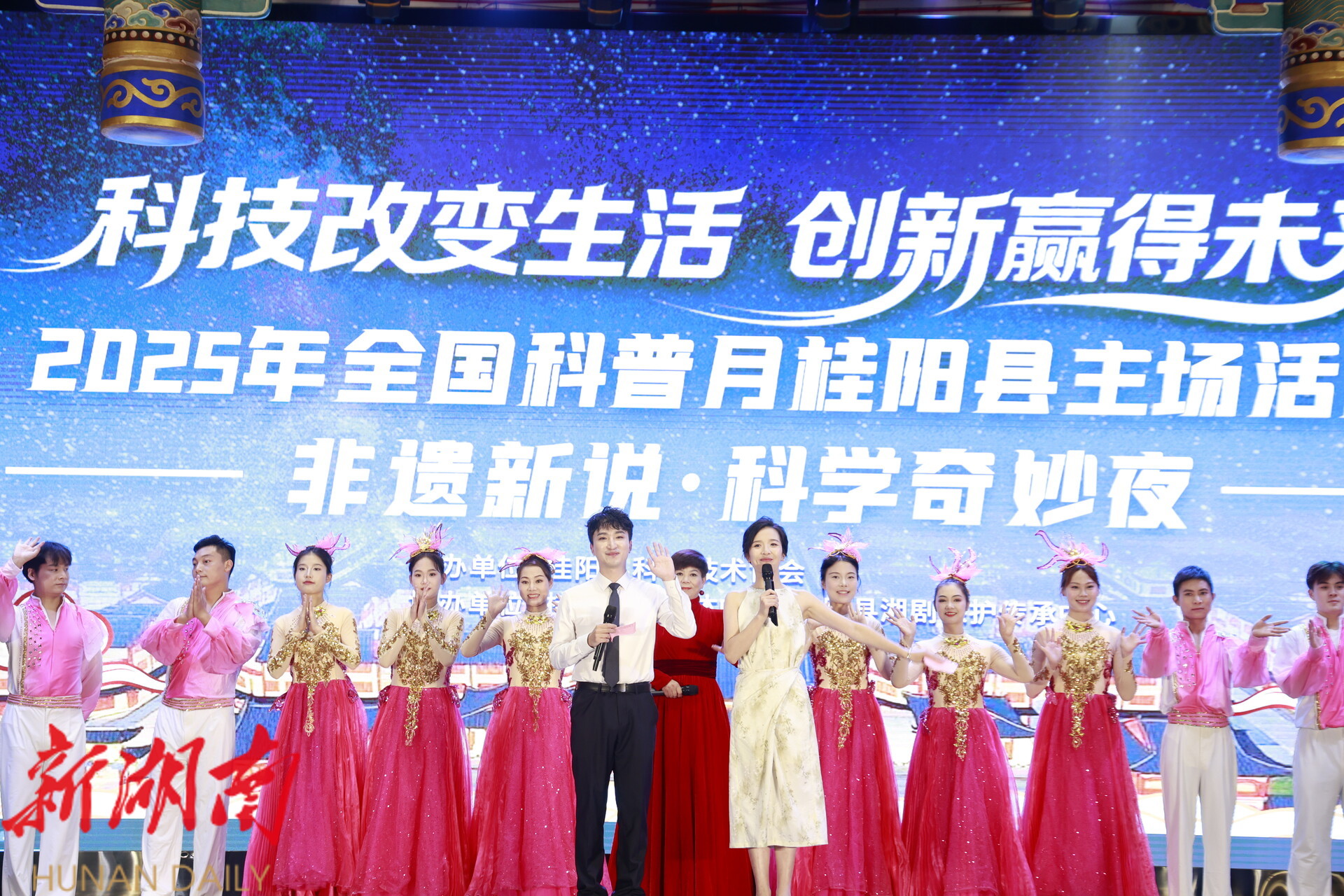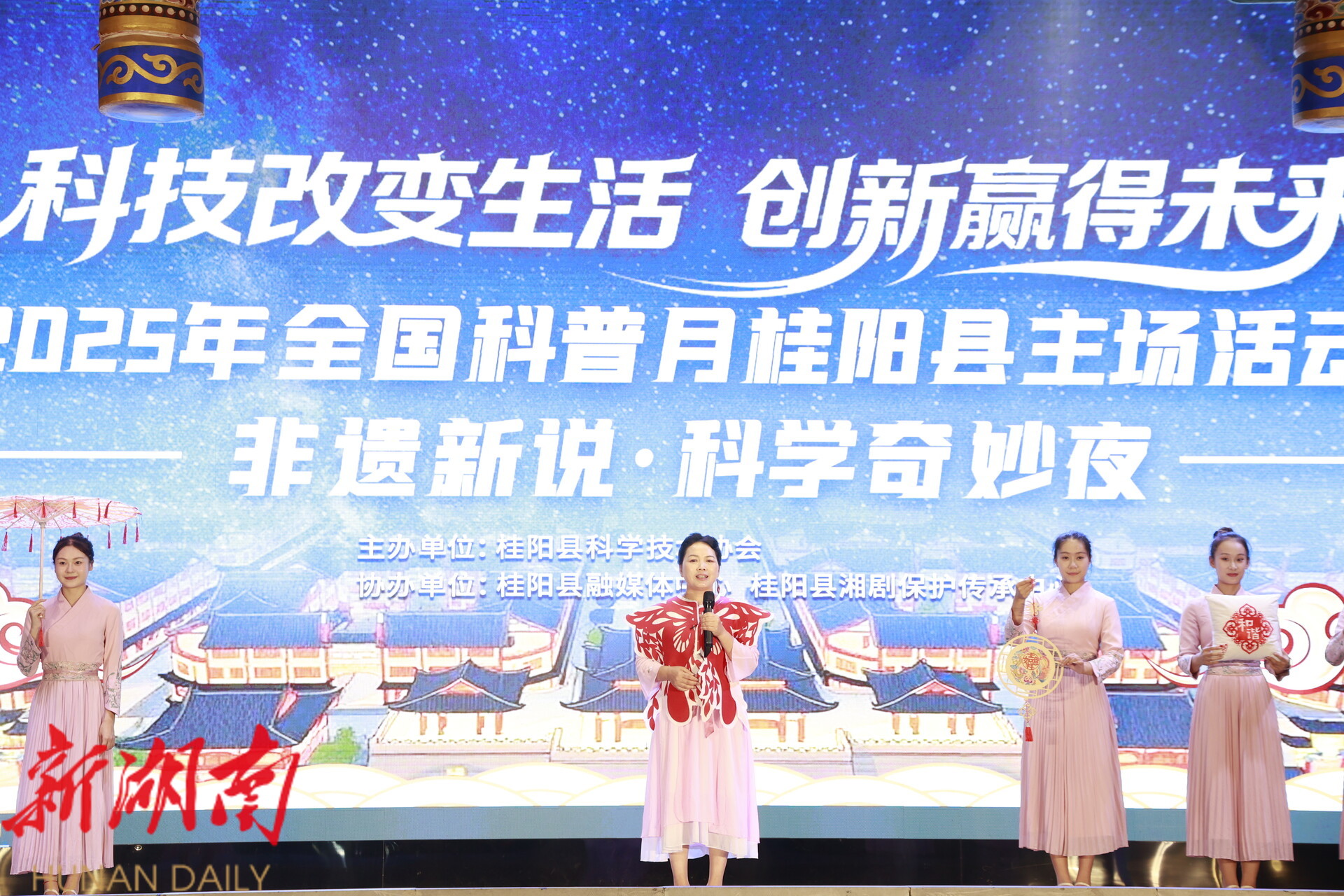 新桂阳9月22日讯(记者 刘娣 邓明俊 李子璇 欧阳宇轩 )2025年9月是“全国科普月”,9月19日晚,一场“非遗新说·科学奇妙夜”主题晚会在我县上演。古法造纸、湘南木雕、精美剪纸……非遗传承大师陆续登台演绎,用科技解码古老匠心,共同点燃科学的火花。