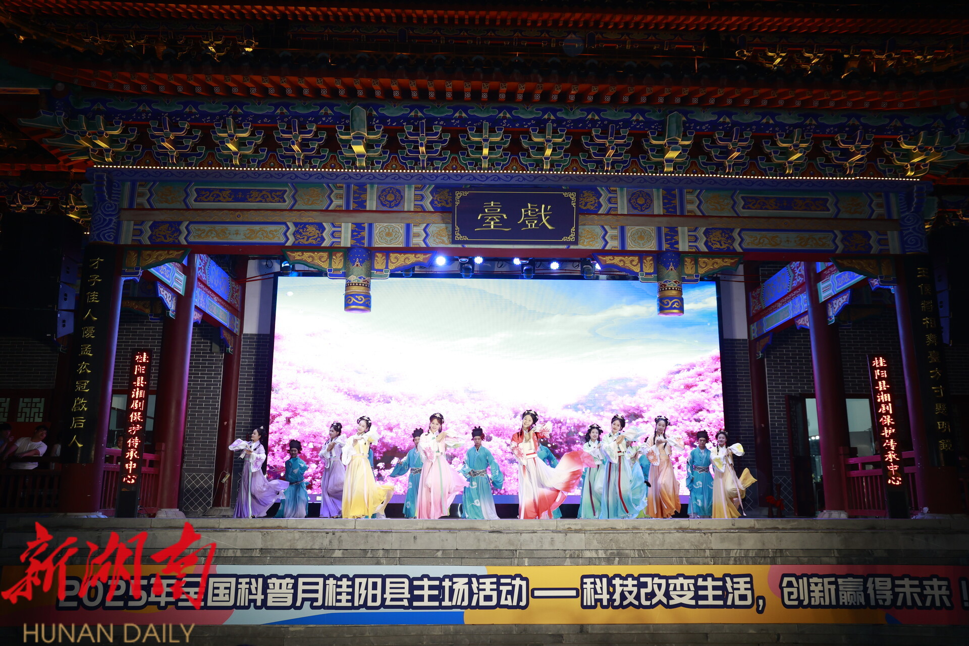 晚会在激昂的湘剧《赵子龙计取桂阳》选段表演中热闹开场,湘剧传承人向观众介绍了三国时期攻城作战的武器装备和科学原理,让大家感受了一场跨越千年的冷兵器科普。开场活动还结合了我县独特的“矿冶文化”,让观众们近距离感受“千年矿都”矿冶技艺发展的历史脉络。