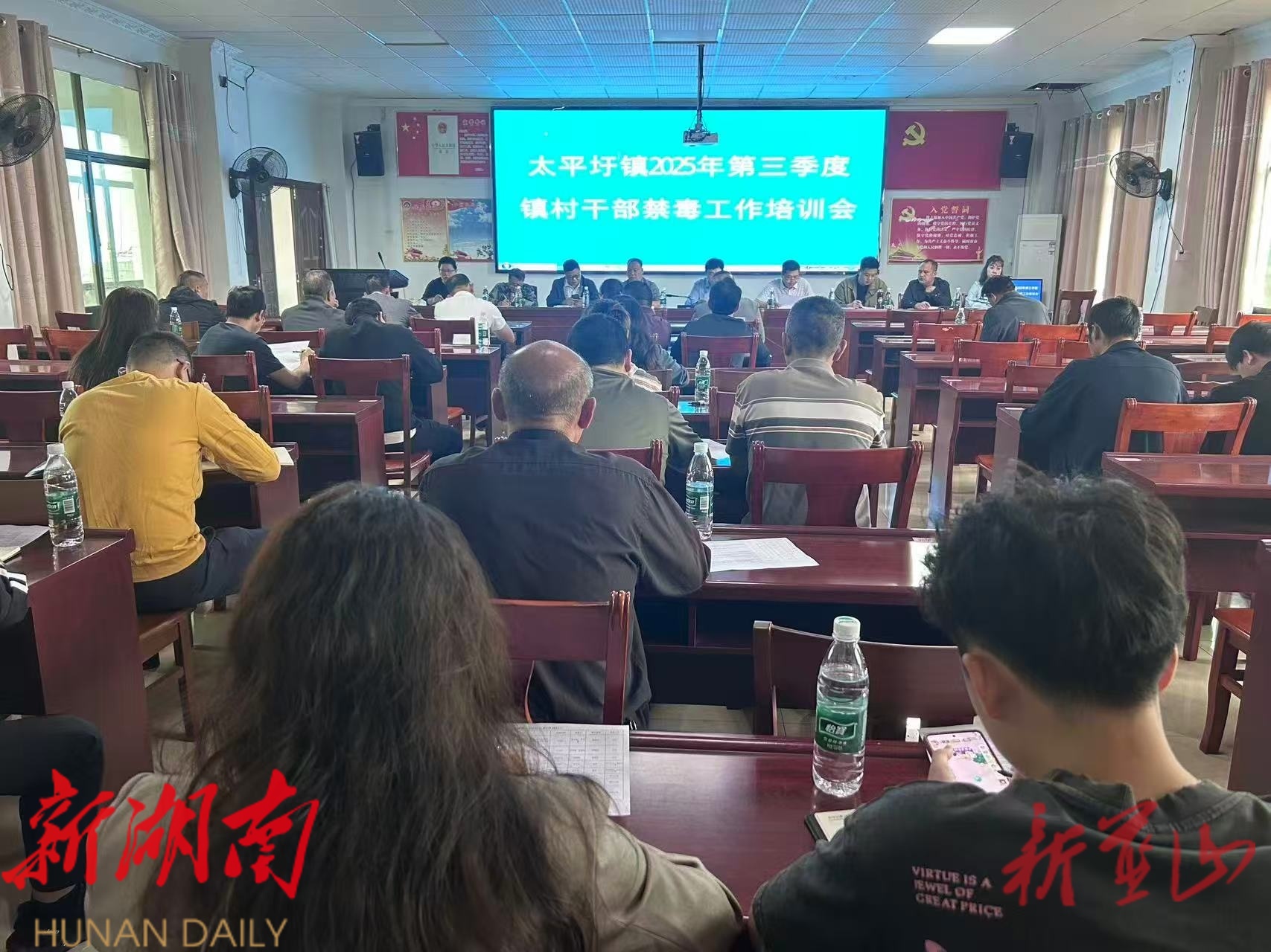 新蓝山客户端9月22日讯 (通讯员 梁余成 ) 为持续深化全镇禁毒斗争,进一步提升基层干部的禁毒业务能力和工作水平,筑牢基层禁毒防线,太平圩镇于9月22日组织召开2025年第三季度镇村干部禁毒工作培训会。各村“两委”干部、网格员及政府工作人员全员参会,共同为基层禁毒工作“充电赋能”。