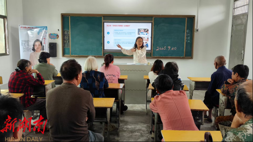 新桂阳9月22日讯(通讯员 谭剑 李丽珊)为进一步推动家庭教育指导服务深入基层,2025年9月21日上午,邓小燕心理工作室两位教师邓小燕、王勇在红色革命发源地——车江村村小开展公益性家庭教育课,将科学教育理念送入乡村,吸引了45名学生、家长参与课堂。与此同时,几公里外的花麦村村委会议室里,存善学校李利元校长也正为52名学生和家长呈现一场深入浅出的家庭教育讲座。两地课堂同步推进,将科学教育理念播种在乡村教育的土壤中。
