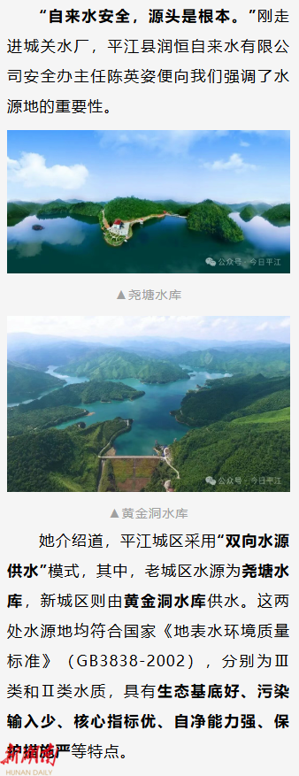 平江融媒9月23日讯(记者 陈振要)自来水安全关系千家万户,从源头到龙头,平江城区供水究竟如何保障水质?近日,记者走进 平江县润恒自来水有限公司 城关水厂 和 城乡供水水质检测中心 , 一探究竟。