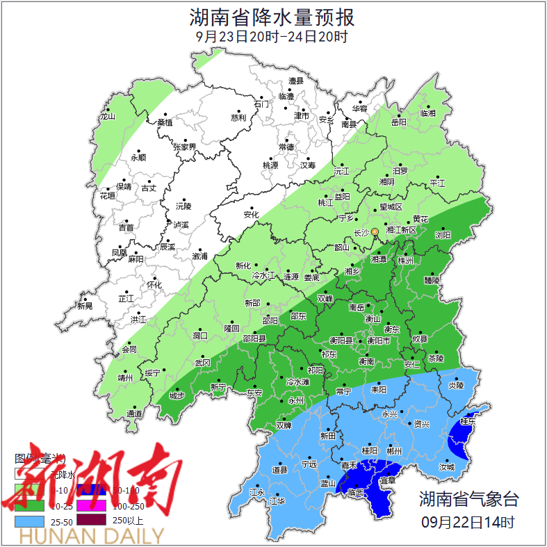 23日晚上至24日白天,湘东、湘南阴天有小到中雨,湘东南部分地区大雨,其中郴州东部南部局地有暴雨,其他地区多云,其中湘西北局地有小雨;北风3~4级,局地阵风7~9级;最高气温23~28℃,最低气温19~21℃。