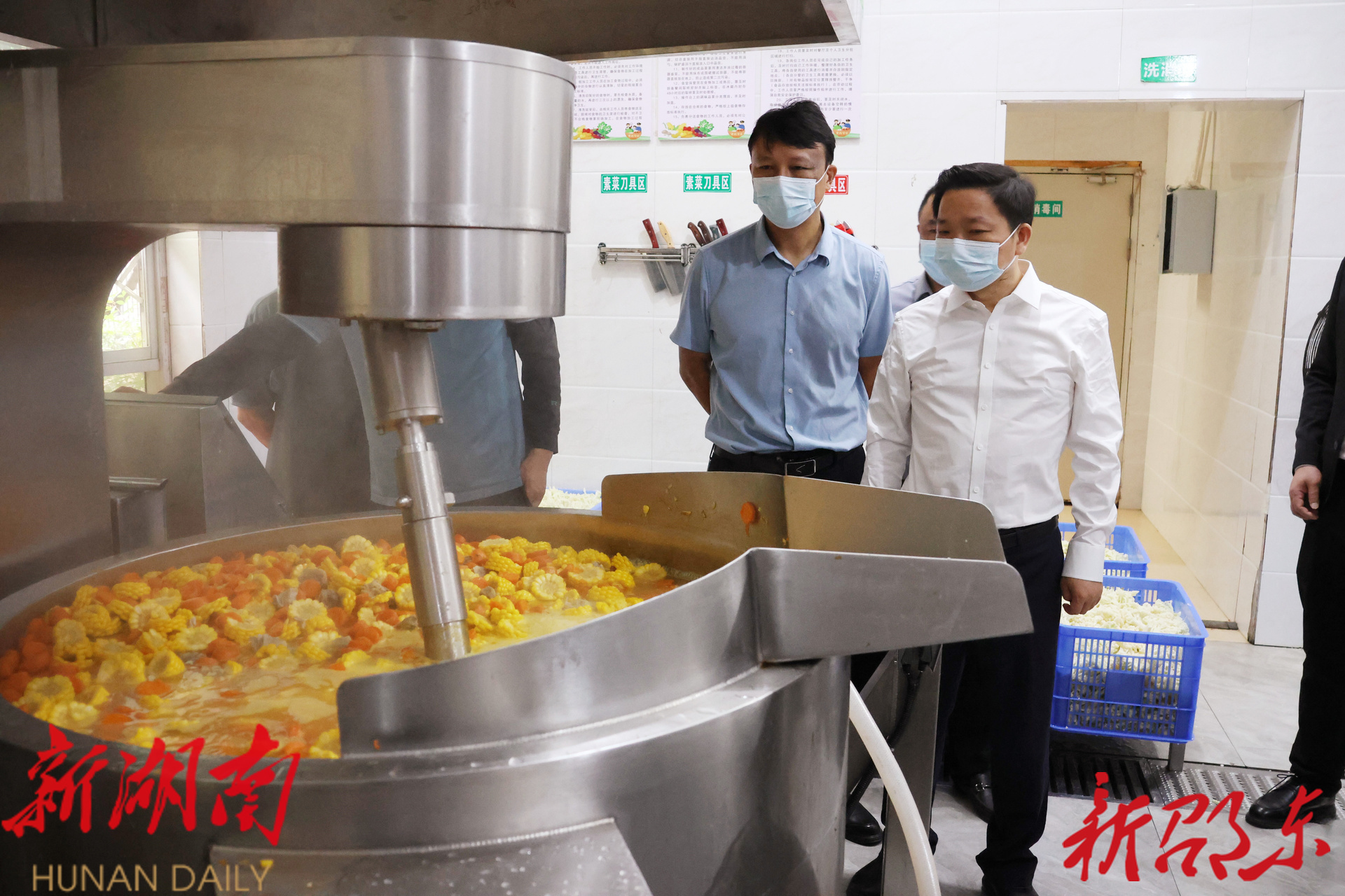 新邵东客户端9月23日(记者 张平华 实习生 赵静怡) 9月23日,邵东市委书记李国军到城区学校、建筑工地、商超、客运站及企业,调研督导校园食品安全、生态环保、安全生产和优化营商环境等重点工作,强调要以严实作风筑牢民生底线,以优质服务激发发展活力,为邵东经济社会高质量发展提供坚实保障。市委常委、副市长王卫兵,副市长彭国顺参加。