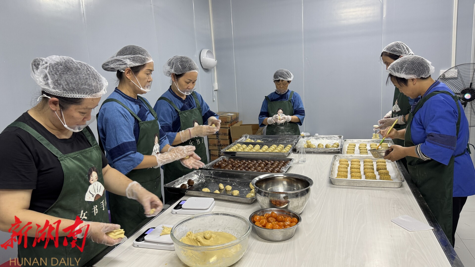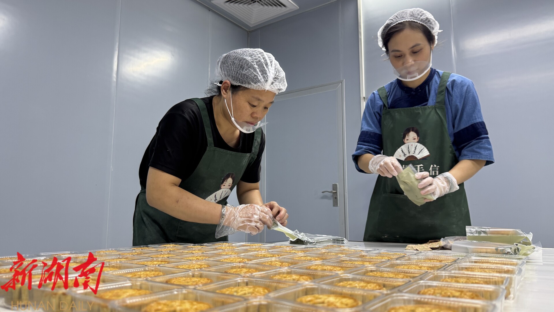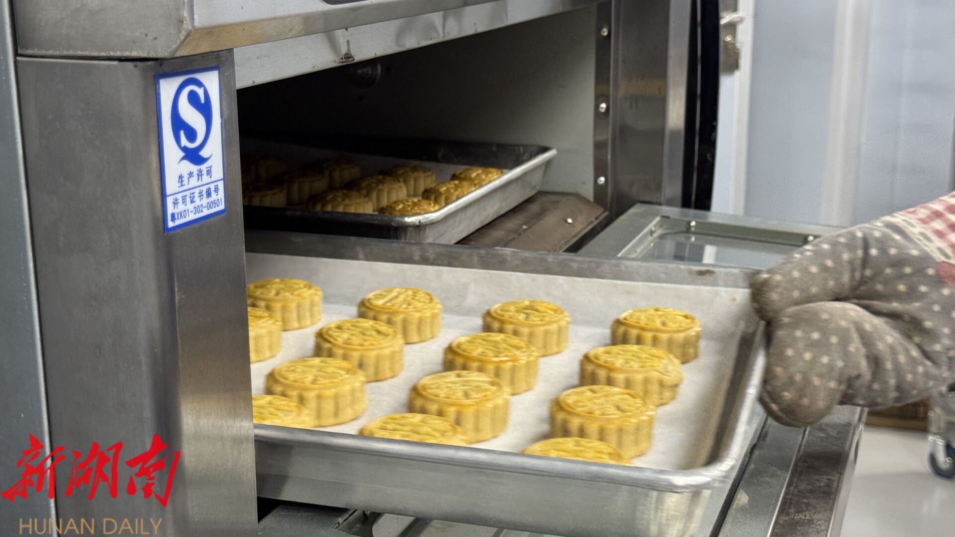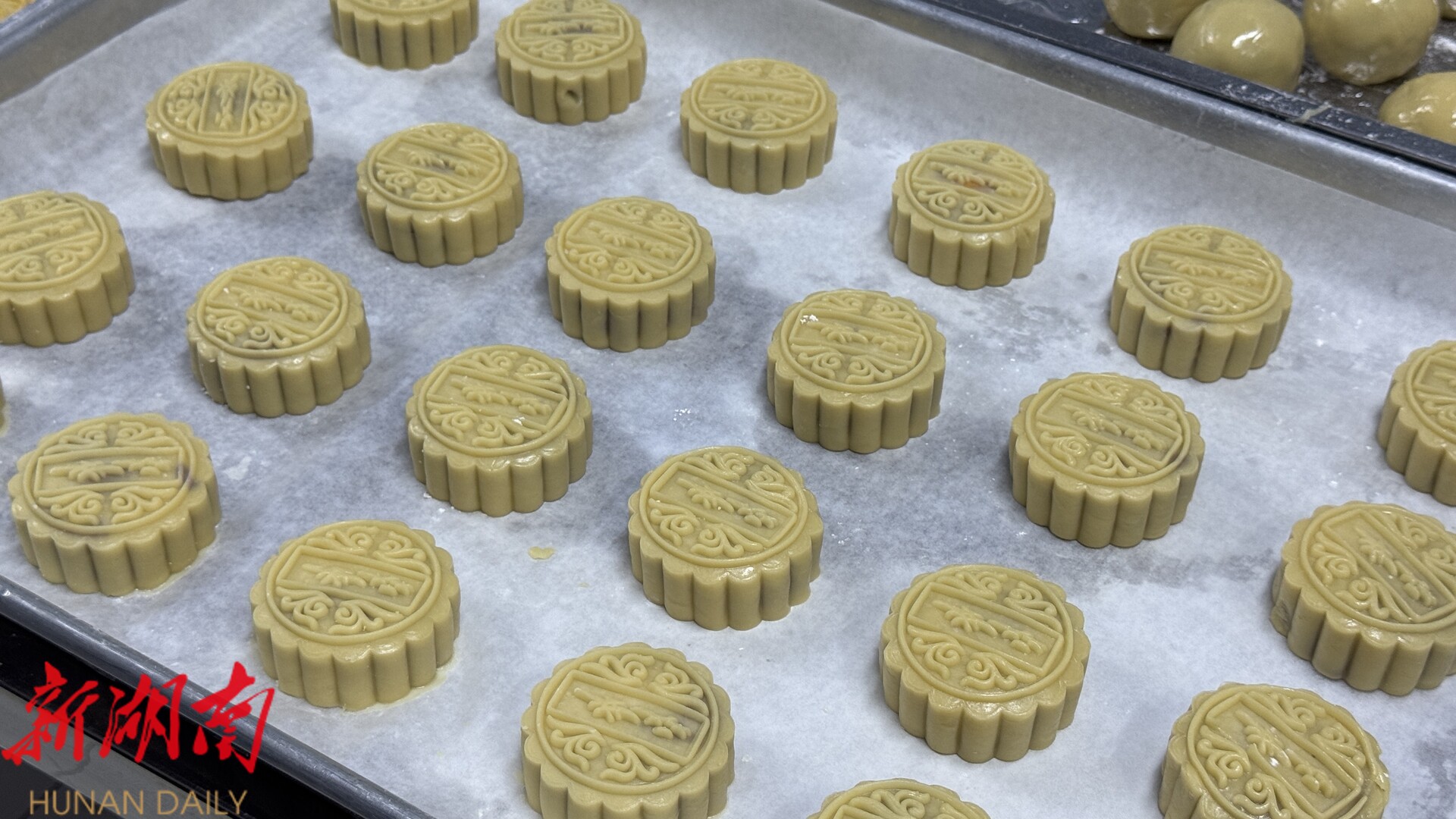 女书手信店主李雪英介绍:“每一块女书月饼都由手工揉捏烘焙,饼面镌刻着‘平安’‘吉祥’‘喜乐’‘花好月圆’等女书吉语,把祝福揉进馅里,也把女书文化递到掌心。”