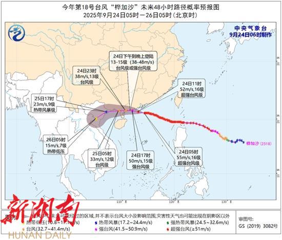 今天5时,“桦加沙”的中心位于广东省阳江市东偏南方向约255公里的南海北部海面上,将于下午到晚上在广东台山到湛江一带沿海登陆,登陆时强度可达台风级或强台风级,登陆后强度将逐渐减弱。