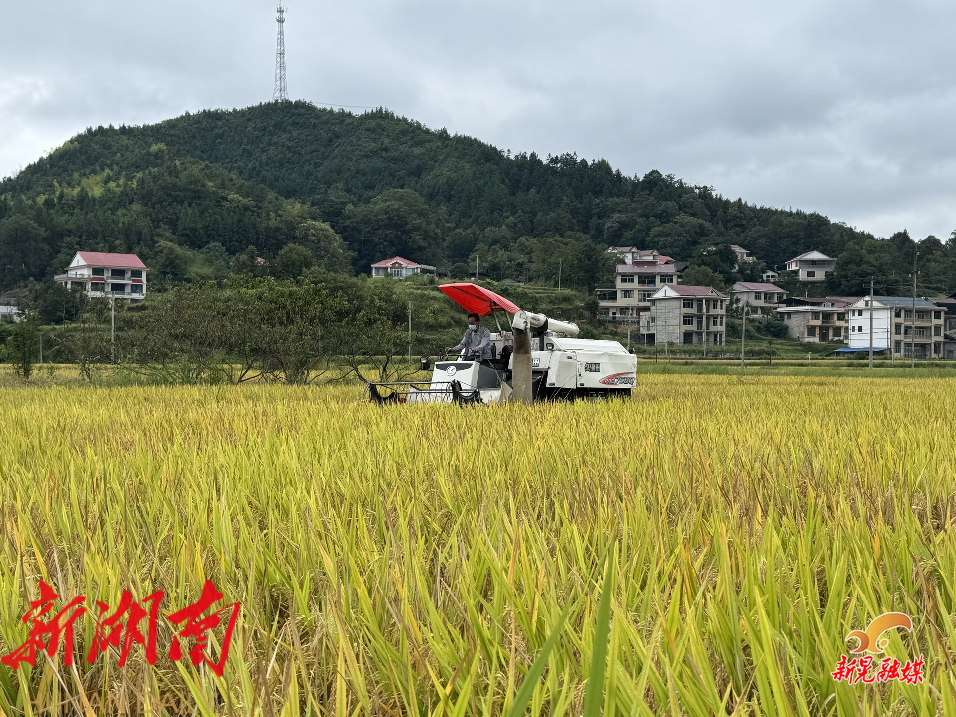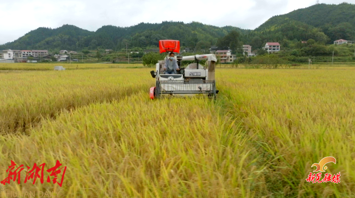 新晃融媒9月24日讯(记者:甘胜男 向勇嘉)金稻飘香,谷粒归仓。在扶罗镇东风村,连片稻田披上“金装”,现代农业机械的轰鸣声取代了往日人工劳作的艰辛。一场从“靠天吃饭”到“科技种田”的变革,正让这片曾经的“巴掌田”变成“致富田”!
