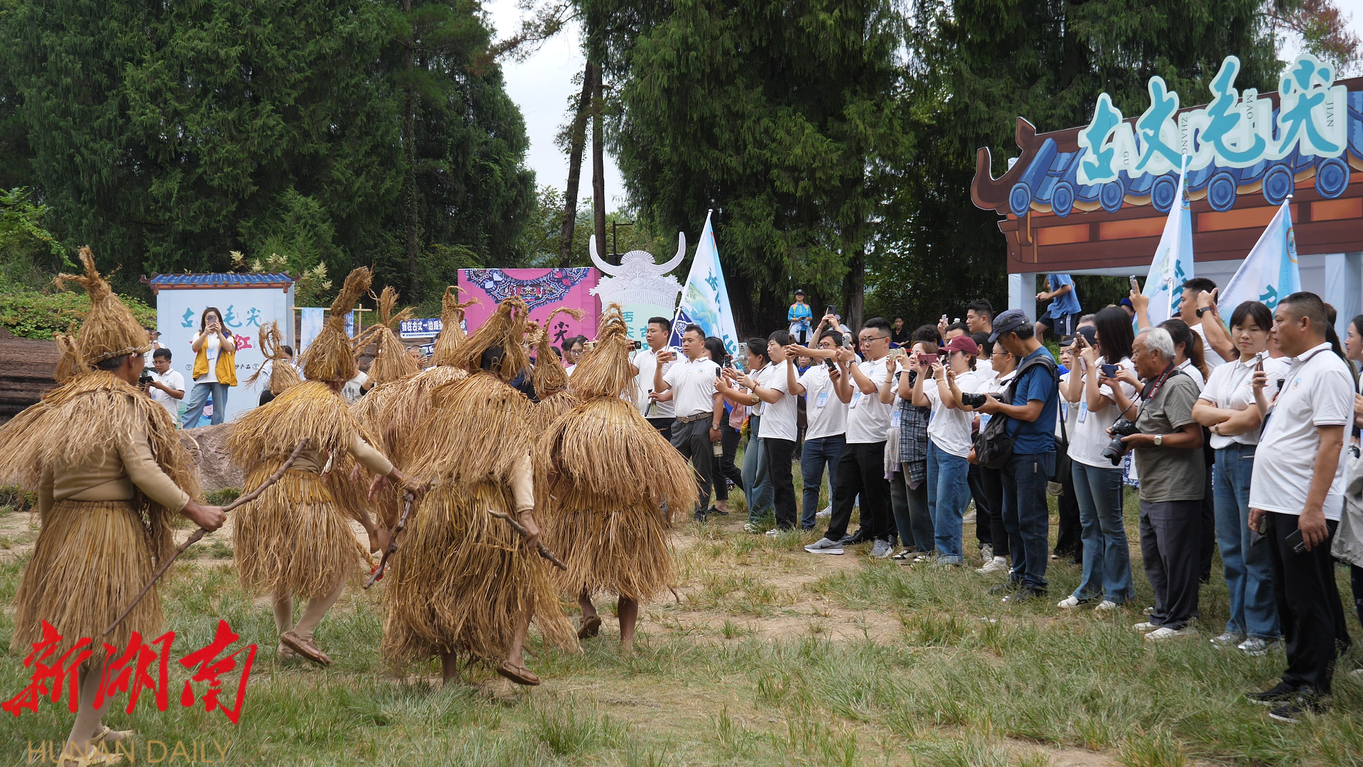 当天,主播们沿着景区的步道漫步,欣赏“亿年石林映金秋”的独特景致。沿途,景区还上演了毛古斯舞、厄巴舞、摆手舞等特色舞蹈,展现了湘西独特的民俗文化。“刚走进来就感觉到空气非常好,我们也是第一次看到这么多的红色岩石,感觉非常的震撼。”来自怀化的主播覃倩蓉说道。