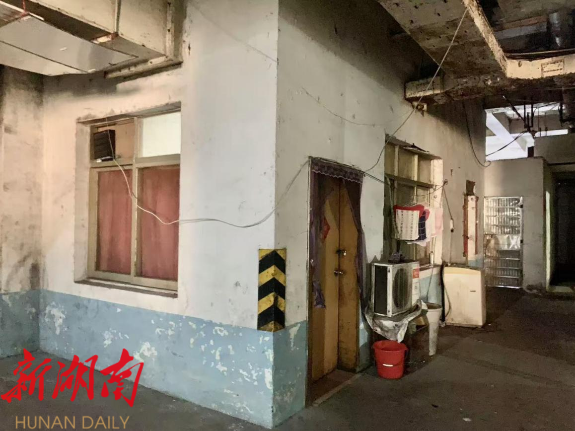 (拆违前,迎宾大厦负一楼停车库违建,堵塞通道)