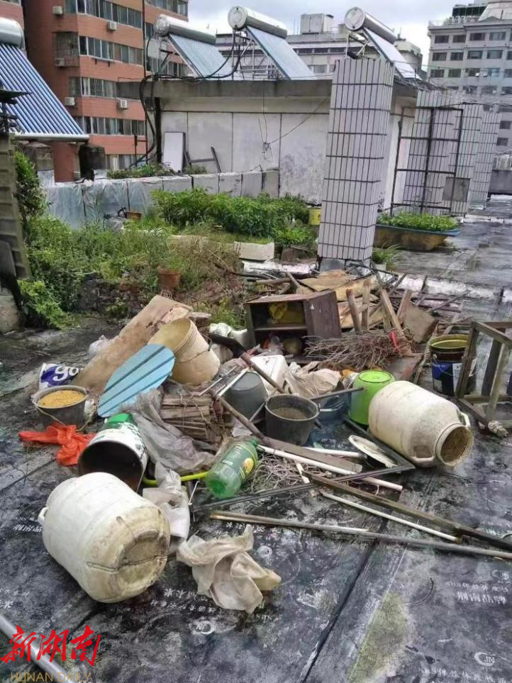 (清理杂物后,解决了楼顶坠物和房屋安全的隐患)