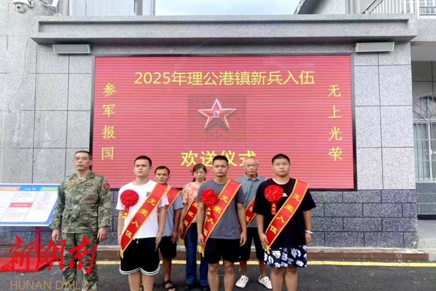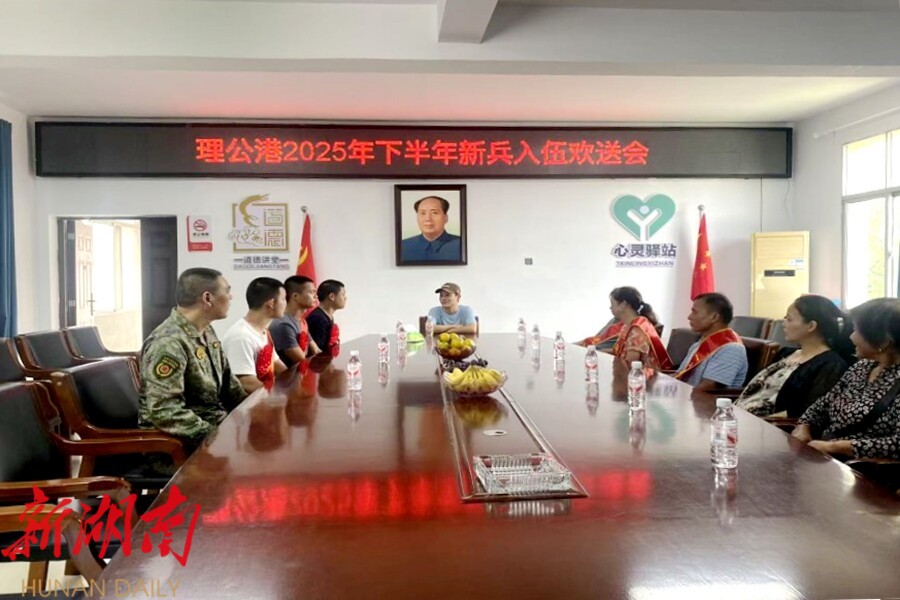 视外桃源客户端9月17日讯(通讯员:徐俊)金秋送爽,热血铿锵。近日,理公港镇武装部、退役军人服务站组织召开2025年下半年新兵入伍欢送会,热烈欢送3名新兵光荣入伍,奔赴军营,开启保家卫国的新征程。镇领导,新兵家属齐聚一堂,共同见证这一光荣时刻。