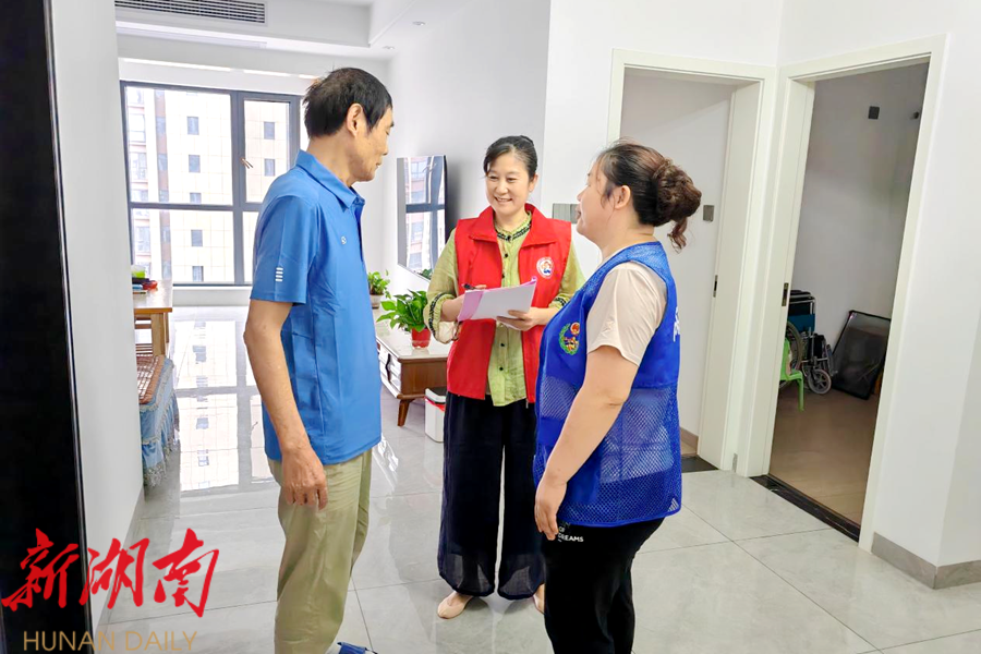 社区志愿者们身着志愿马甲,带着基层党组织的关怀,走进独居老人曾叔叔、杨姨的家中。到曾叔叔家中,志愿者们与他亲切交谈,详细询问近日来的身体状况和生活需求;到杨姨家中,志愿者陪她聊天解闷,听她讲述过去桃纺厂里的故事;志愿者还主动帮忙打扫房间,让老人的居住环境更加整洁舒适。