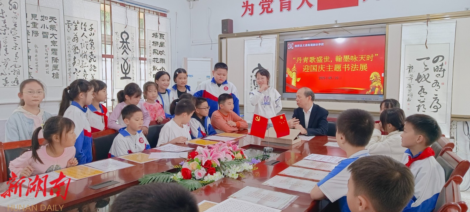 湖南日报·新湖南客户端9月24日讯(通讯员 闵焯 周贝)“在书法创作中,创作者常常会将书写内容、字体风格、章法布局等与节气中的典型事物特征相结合……”9月23日,湘阴县新农学校开展“丹青歌盛世翰墨咏天时”迎国庆主题书法展,让师生在墨香雅韵中感受传统文化与时代精神的碰撞。