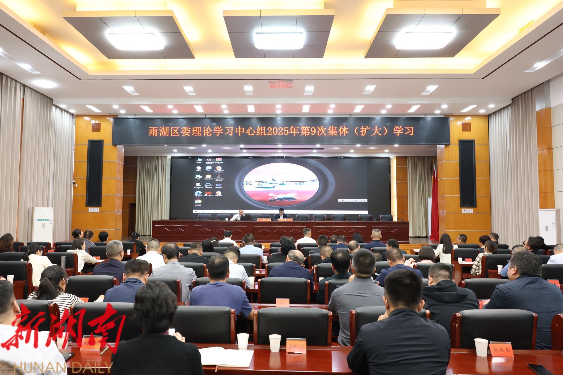 雨湖融媒9月24日讯( 记者 赵栋)9月24日, 雨湖区委理论学习中心组开展2025年第9次集体(扩大)学习,区委书记陈小平主持会议。区委副书记、区长柳军辉,区委理论学习中心组全体成员参加学习。