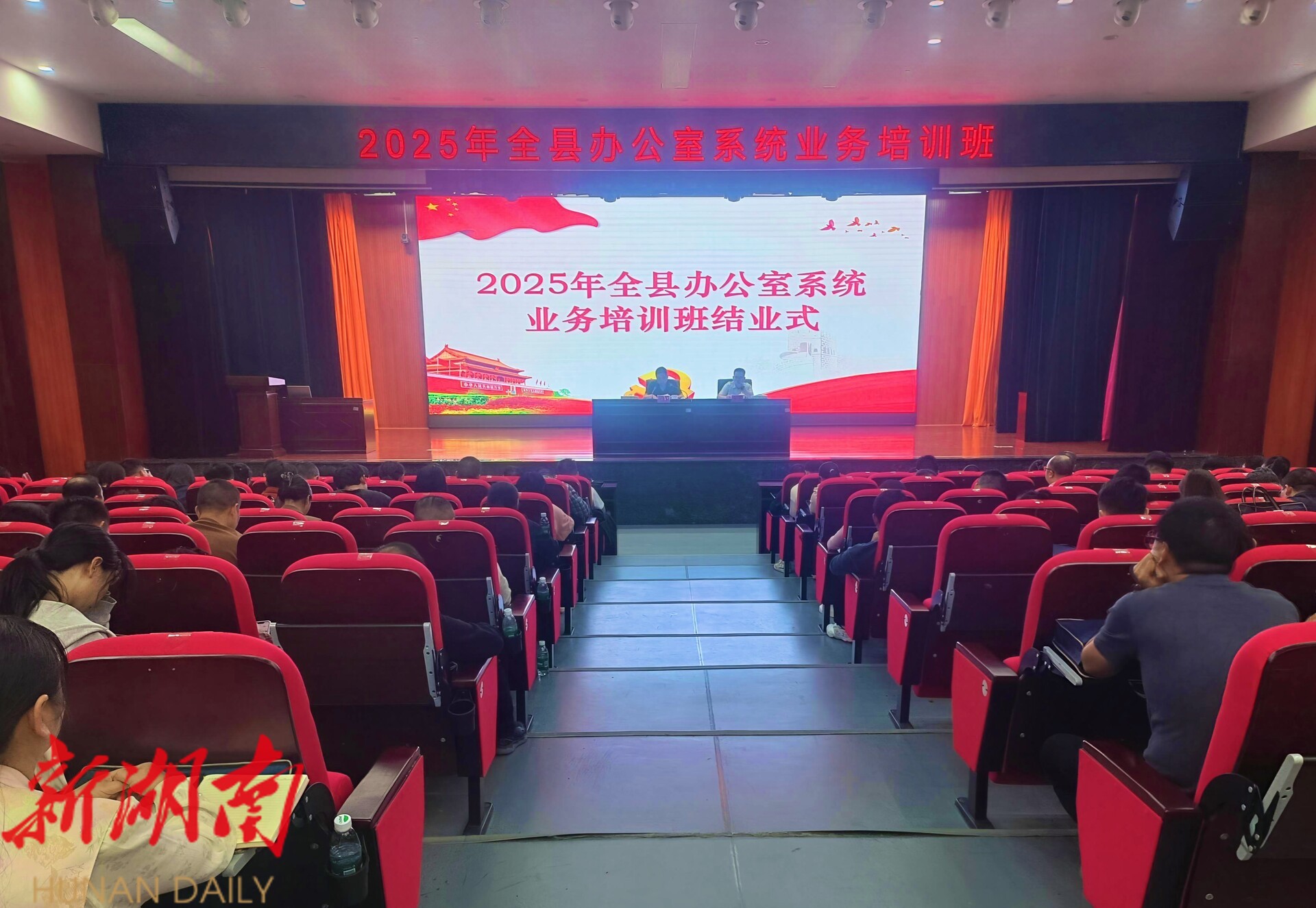 新新邵客户端9月24日讯(记者 寻健) 9月23日至24日,2025年全县办公室系统业务培训班在县委党校举办。县委常委、县委办主任蒋命贤出席开班式并讲话,县政府办主任何冀湘出席结业式。