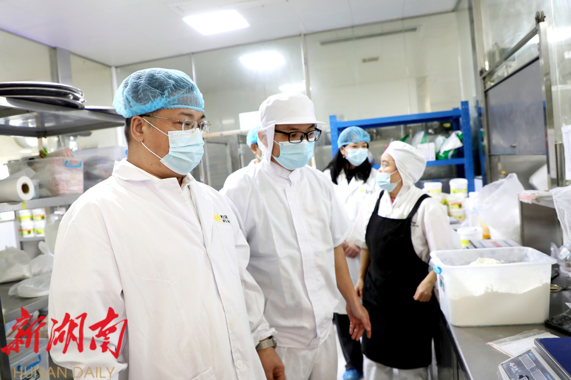 ▲在湖南麦芯食品有限公司查看食品生产情况