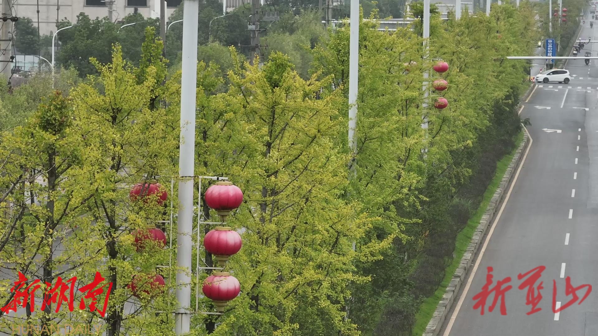 新蓝山客户端9月24日讯 (通讯员 成醒 彭耀民)金秋时节,位于蓝山县蓝山大道中央绿化隔离带的银杏次第由绿转黄,连成一条金色丝带,吐露着大自然的温暖馈赠,将秋天的独特气息渲染到极致。通过航拍镜头,只见成行排列的银杏树,犹如秋天的使者,矗立在道路中央,树梢上深深浅浅的片片金叶,在秋风起伏间翩翩起舞,与道路中的车流、亮眼的交通标识交相辉映,绘就了一幅美丽动人的金秋画卷。