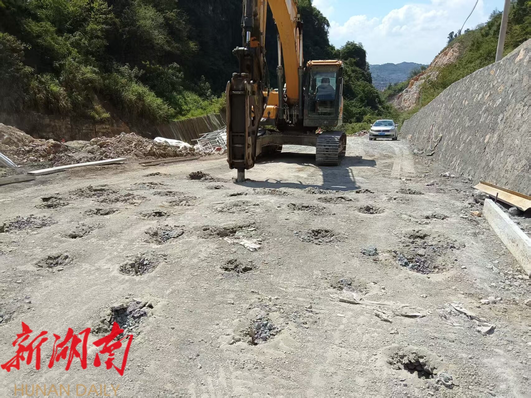 湖南日报·新湖南客户端9月25日讯(通讯员 段姝 喻驰洋)近日,冷水江市农村公路建设养护中心负责实施的X569同梓公路鹰嘴岩段抢修工程进入最后冲刺阶段,各类施工机械有序作业,一条崭新的水泥路面已初步呈现。