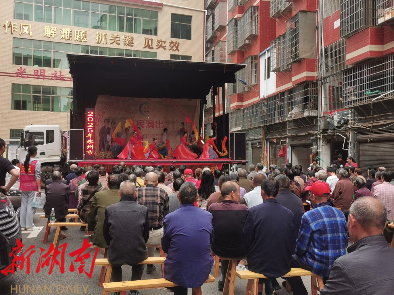 活动现场,移风易俗“十抵制、十提倡”展板格外醒目,吸引众多居民驻足观看。社区工作人员还主动上前,为居民详细解读展板内容,耐心解答居民疑问,让移风易俗知识家喻户晓。一个个紧扣移风易俗主题的节目轮番登场,赢得现场居民阵阵掌声。快板说唱《移风易俗创新风》节奏明快、朗朗上口,表演者用通俗易懂的语言,将抵制高价彩礼、厚葬薄养等移风易俗要点娓娓道来,让居民在欢快的节奏中轻松领会新风尚内涵;祁阳小调《不要彩礼要幸福》独具地方特色,婉转悠扬的曲调搭配真挚动人的歌词,讲述了摒弃彩礼陋习、追求幸福生活的美好故事,引发在场观众强烈共鸣;祁剧小戏《彩礼风波》则以戏剧表演的形式,生动再现了因彩礼引发的家庭矛盾及最终化解的过程,用贴近生活的剧情引导居民树立正确婚恋观,倡导文明节俭新风。