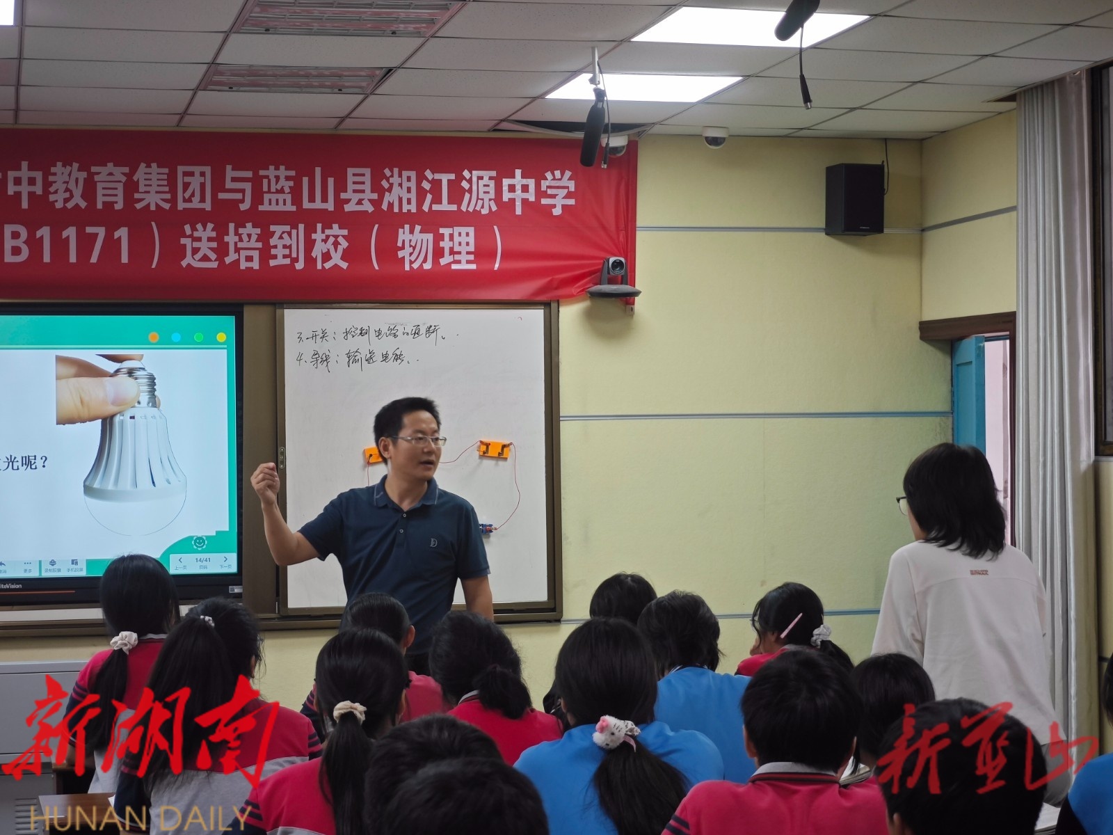 新蓝山客户端9月25日讯 (通讯员 邓丽珍 杨晋东 曾文彦)近日,国培计划(2025)“湖南师大附中教育集团与蓝山县湘江源中学‘一对一’精准帮扶培训”物理学科送培活动圆满完成。