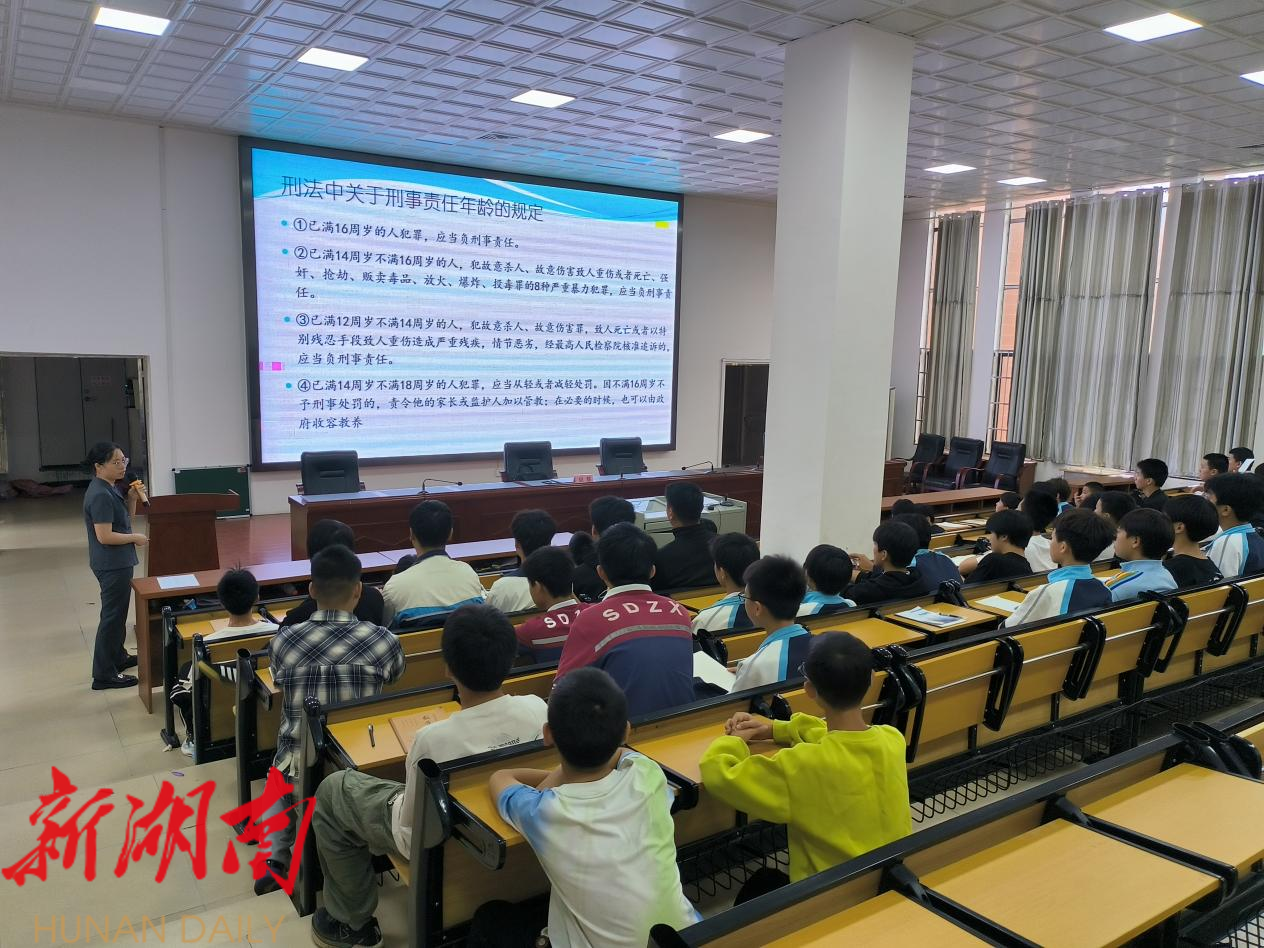 新湖南客户端9月24日讯(通讯员 陈艳婷 唐欣玮)9月24日下午,东安县树德中学组织开展法治教育课。