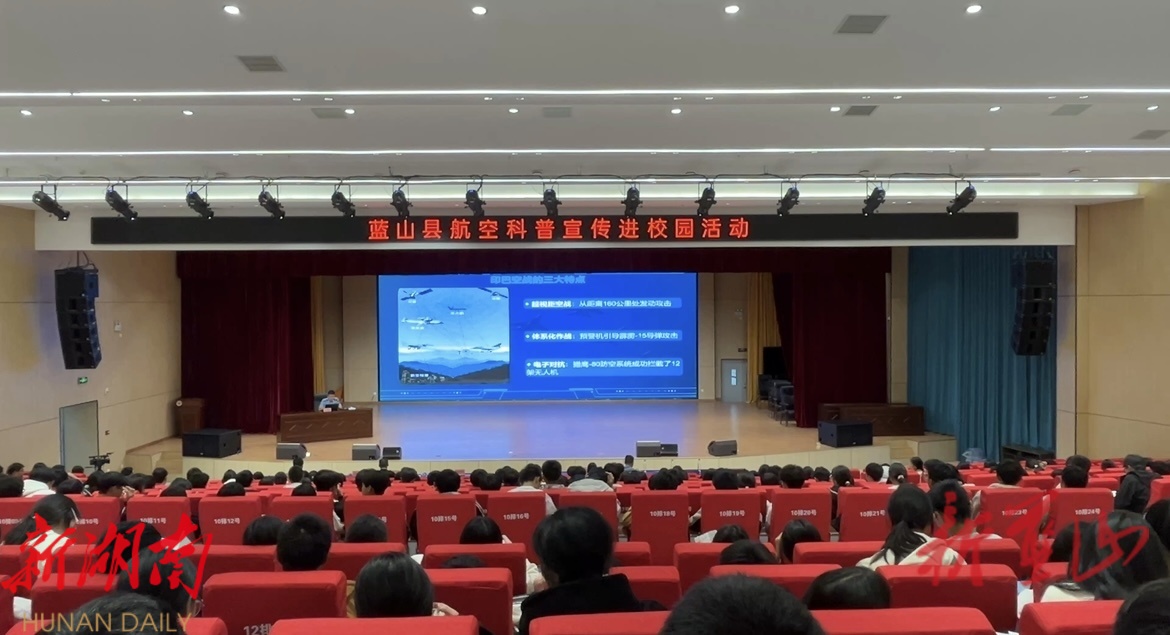 (通讯员 李季)9月24日,蓝山县科协、县人武部、县教育局等单位在县二中联合开展航空航天科普知识讲座进校园活动,为广大青少年学子普及航天知识,传承航天精神,种下航天梦想,县委常委、县人武部部长王崴崴出席并授课。