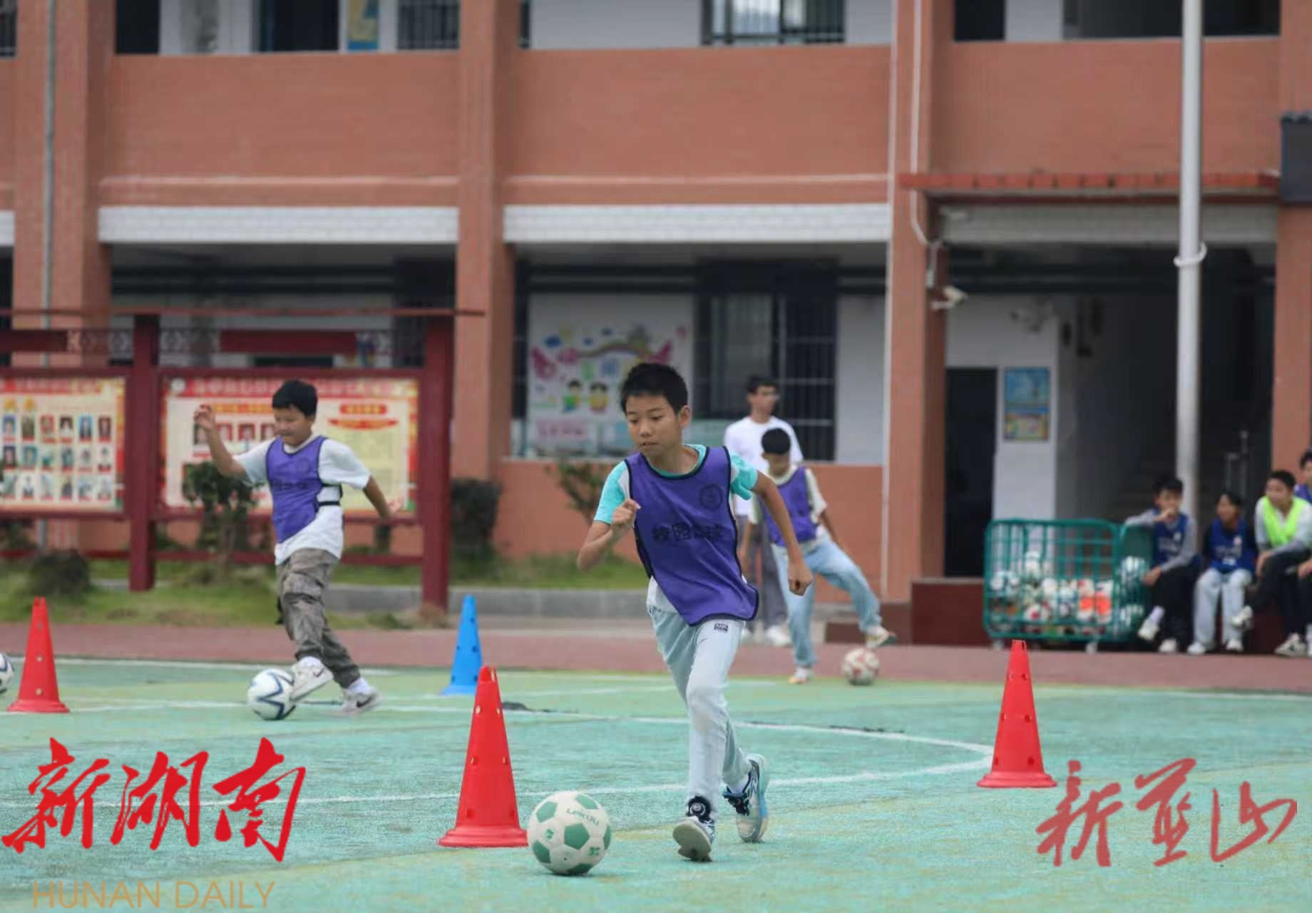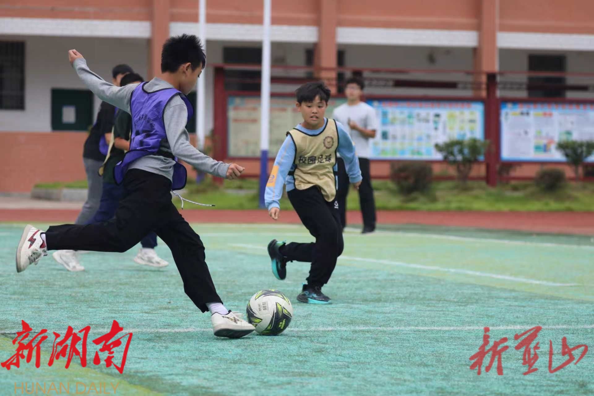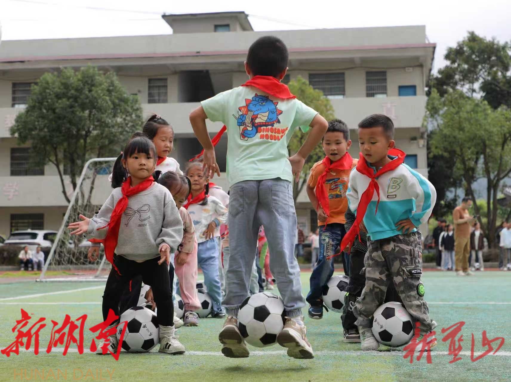 (通讯员 唐杨 胡静涛 陈昊)在大桥学校的操场上,408名瑶乡少年伴随着动感的音乐,整齐划一地做出颠球、揉球等一系列足球操动作,随后又迅速投入紧张激烈的分组对抗训练,整个校园充满了活力与激情。