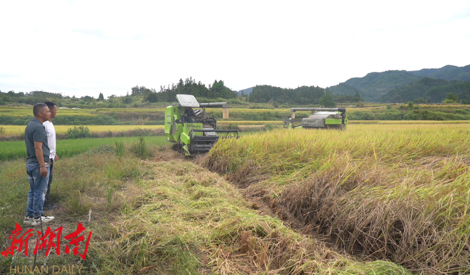 “我承包了300多亩田,过去靠人工收割,一天只能收几亩,费时又费力。如今全部采用机械作业,一天能收二三十亩,效率大幅提升。购买农机还能享受政府补贴,今年采用机插秧技术后,亩产从1100多斤增加到1300多斤,算下来300亩地预计能多赚七八万元。机械化不仅节省人工,还显著增产,带动了周边农户共同发展。”铜湾镇松坡村种粮大户廖方华高兴地介绍。