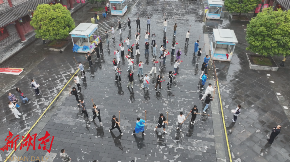 在文化园古郡城,各项筹备工作正在紧张有序地进行。《开城门》仪式开始排演。厚重的城门在号令声中缓缓洞开,演员们步伐稳健,他们用一遍遍的走位,丈量着千年古郡的迎宾礼度,每一个动作都力求精准,将最庄重的仪式感献给八方来客。开城迎宾仪式后,富含桂阳地方特色的“金瓜龙”民俗活动点睛亮相,历史与现代、静谧与欢腾在彩排现场完美融合。