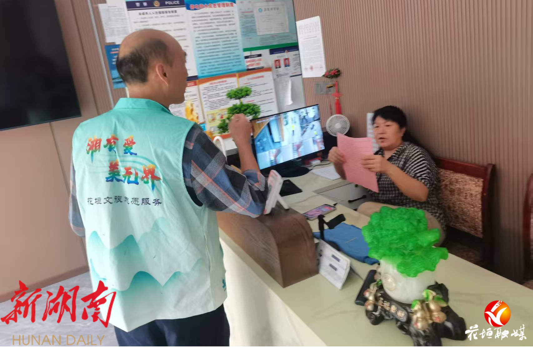 活动中,志愿者们兵分两路,深入景区商铺、民宿、餐馆等经营场所,向经营者逐一发放《花垣县文明旅游 诚信经营倡议书》《守护景区颜值,共筑洁净家园——景区卫生文明倡议书》,倡导经营者以“担当尽责”的态度规范经营,用“热情服务”展现边城风采,同时主动参与景区卫生维护,共同守护古镇的自然与人文“双颜值”。