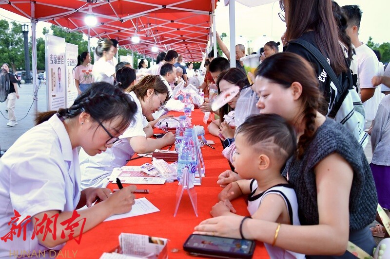 此外,县卫健局还将“中医夜市”搬进左宗棠广场,通过科普宣讲、名医义诊、养生操教学、中药茶饮体验等互动形式,让省级医疗资源以更“接地气”的方式融入市民生活。现场不仅有文艺表演营造氛围,还设置体质辨识、耳穴压豆等体验区,推动市民从“被动就医”向“主动健康”转变。