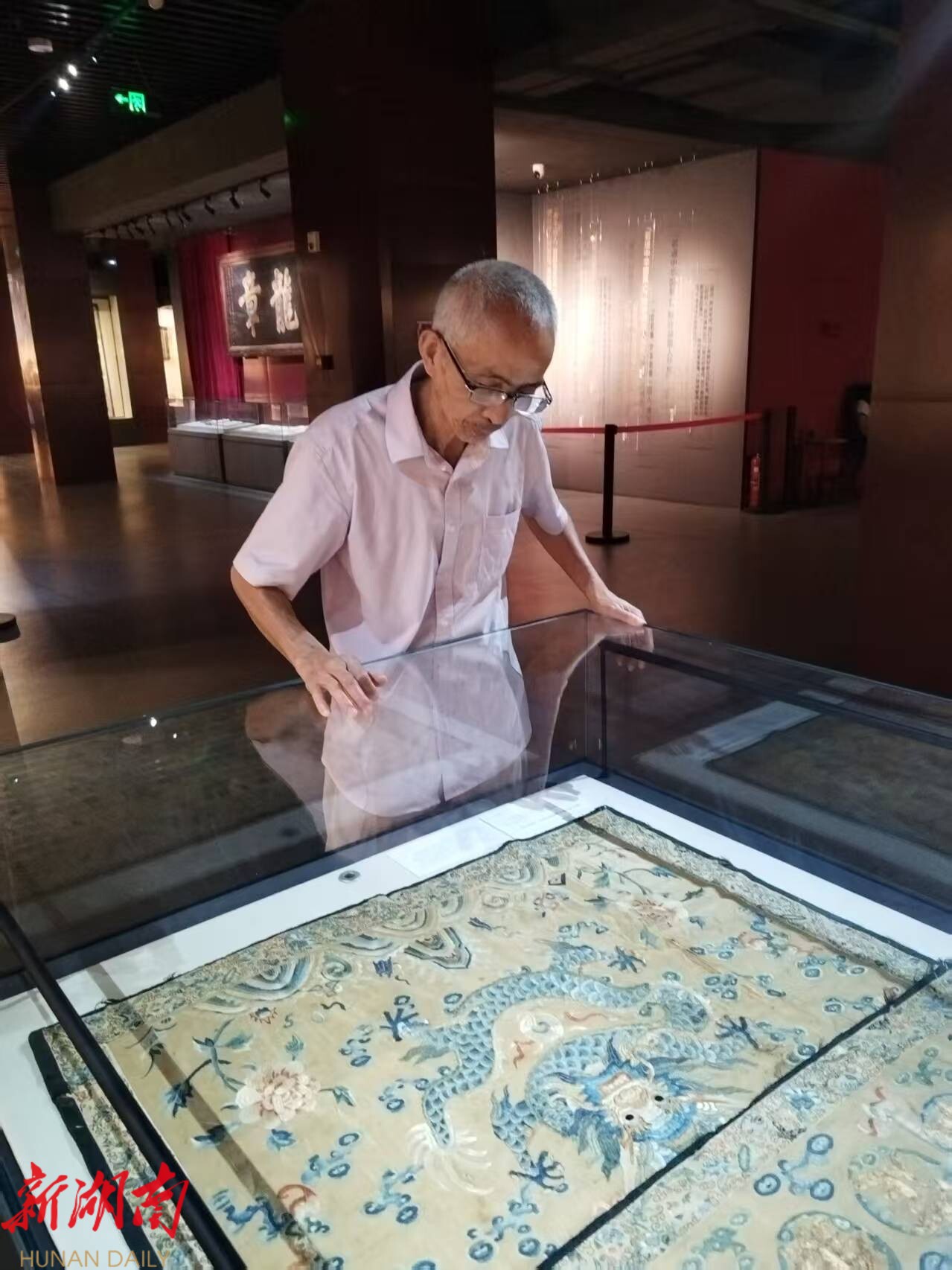 展厅中,那方凝聚着陈湘舟心血的青布桌布,一下锁住了我的目光。玻璃展柜上“左宗棠办公所用”的字样格外醒目,布面虽印着岁月磨损的浅痕,边角却依旧齐整,细密的针脚里藏着旧时的严谨与细致。