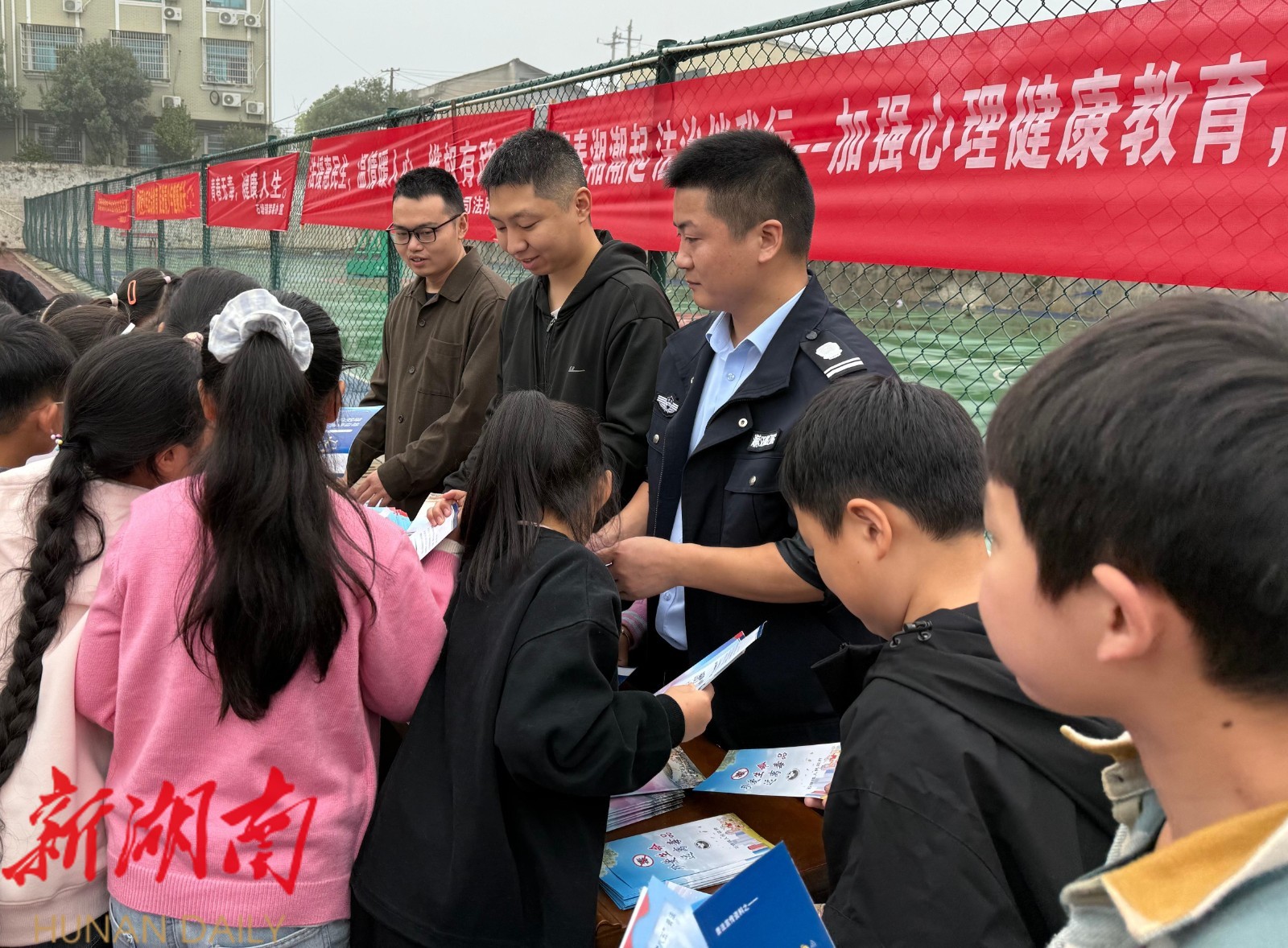 除了法治与安全的“硬守护”,活动还关注青少年“心成长”,以“青春湘潮起 法治伴我行——加强心理健康教育,助力学生健康成长”为主题,通过发放心理知识手册、开展互动交流,引导学生关注情绪管理、人际沟通,帮助他们以积极心态化解成长中的烦恼,让法治教育更具温度。
