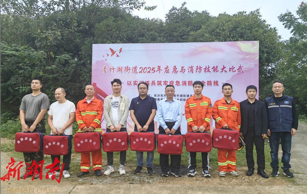 湖南日报 ·新湖南客户端9月26日讯(通讯员 杨芳)“防火服穿戴完毕!”“水泵出水正常!”......9月26日,开福区青竹湖街道应急与消防技能大比武现场气氛热烈。在太阳山森林公园内,12支社区应急队伍分两组同场竞技,用一场“硬核”比拼展现实战能力。