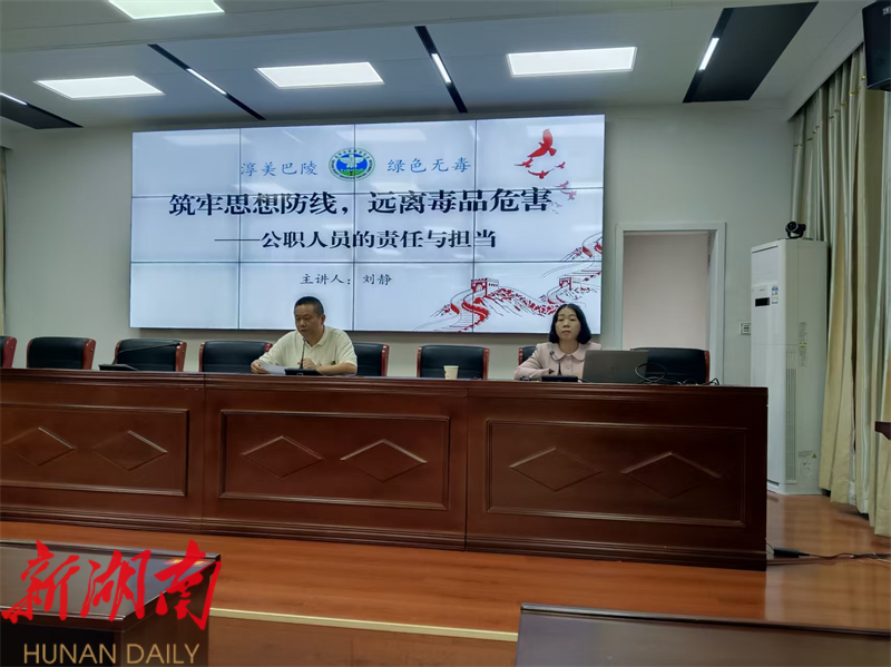 湖南日报·新湖南客户端9月26日讯 (通讯员 胡小倩 杨钰薇) 为确保全体公职人员充分了解禁毒知识及禁毒法律法规,进一步提高党员干部禁毒意识,做合格的公职人员,9月26日,县市场监督管理局组织召开全体公职人员毒品预防教育宣讲会。