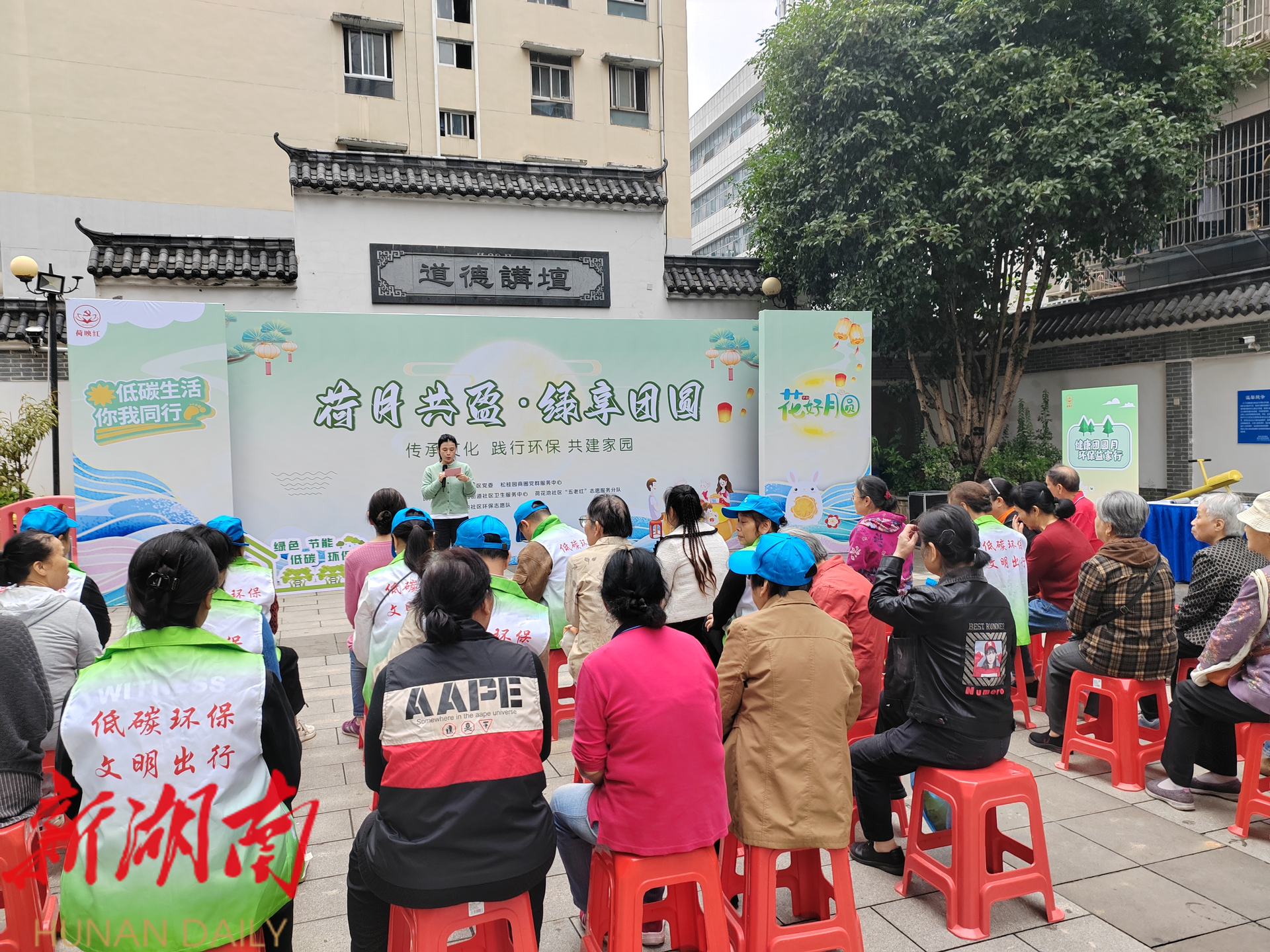 湖南日报·新湖南客户端9月2 6 日讯(通讯员 唐钰慧) 在中秋佳节与国庆节双节来临之际,为弘扬传统文化、倡导绿色低碳生活方式, 今天 上午, 由开福区望麓园街道 荷花池社区 党委、松桂园商圈党群服务中心主办,望麓园街道社区卫生服务中心、荷花池社区“五老红”志愿服务分队、荷花池社区环保志愿队协办的 “荷月共盈· 绿享团圆”中秋环保主题活动 在辖区馨域大厦前坪开展 。