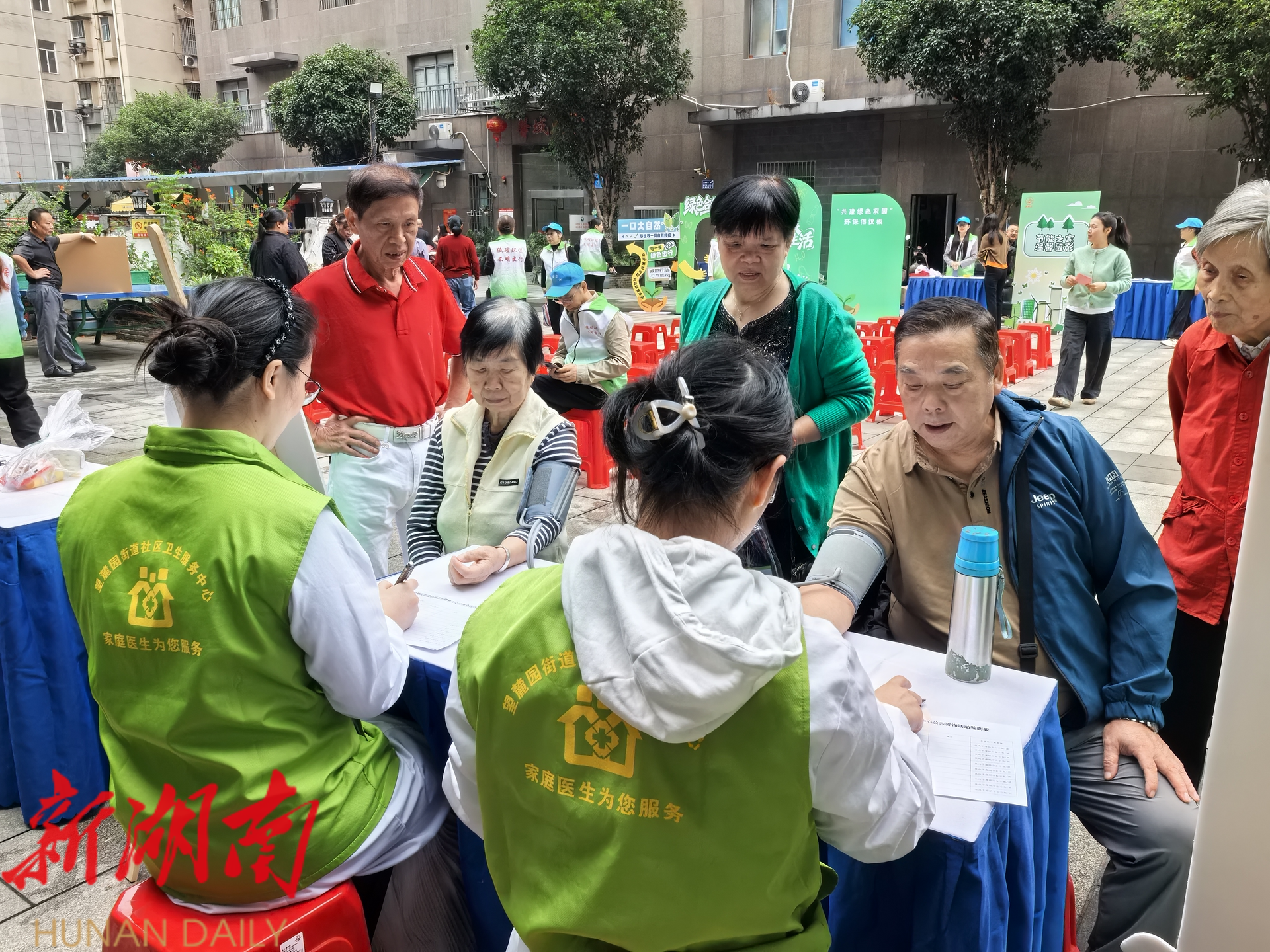 本次活动不仅关注环境健康,也关爱居民身心健康。 在 义诊服务台前,社区卫生服务中心的医生们为居民提供免费血压、血糖检测及健康咨询,将环境健康与个人保健知识相结合,传递“绿色健康生活”理念。