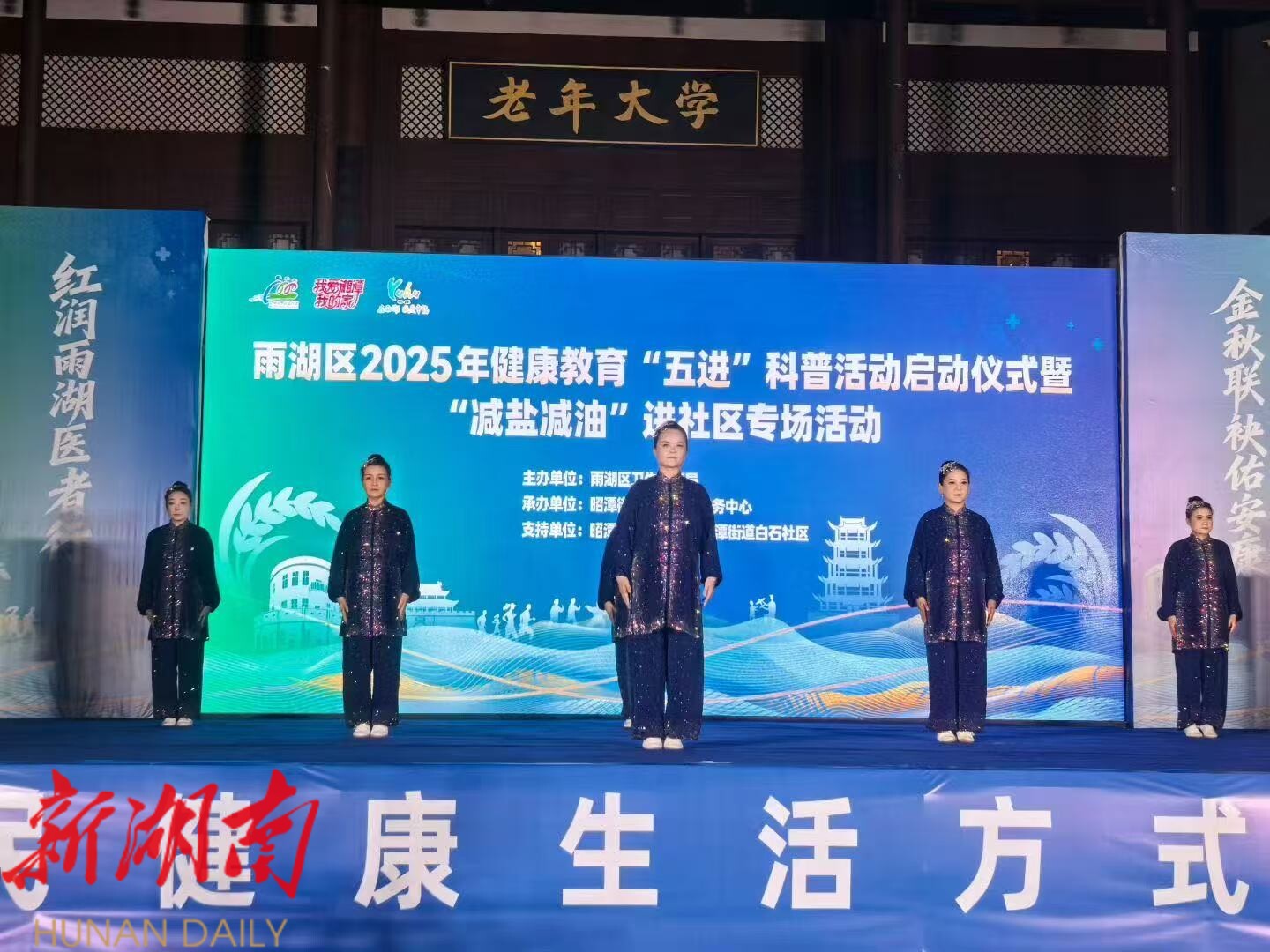 雨湖融媒9月26日 讯 (记者 赵栋 通讯员 刘欣 刘俏婷) 为深入践行健康中国战略,筑牢国家级慢性病综合防控示范区与省级健康促进区建设根基,9月26日晚,雨湖区开展2025年健康教育与健康促进“五进”系列活动。