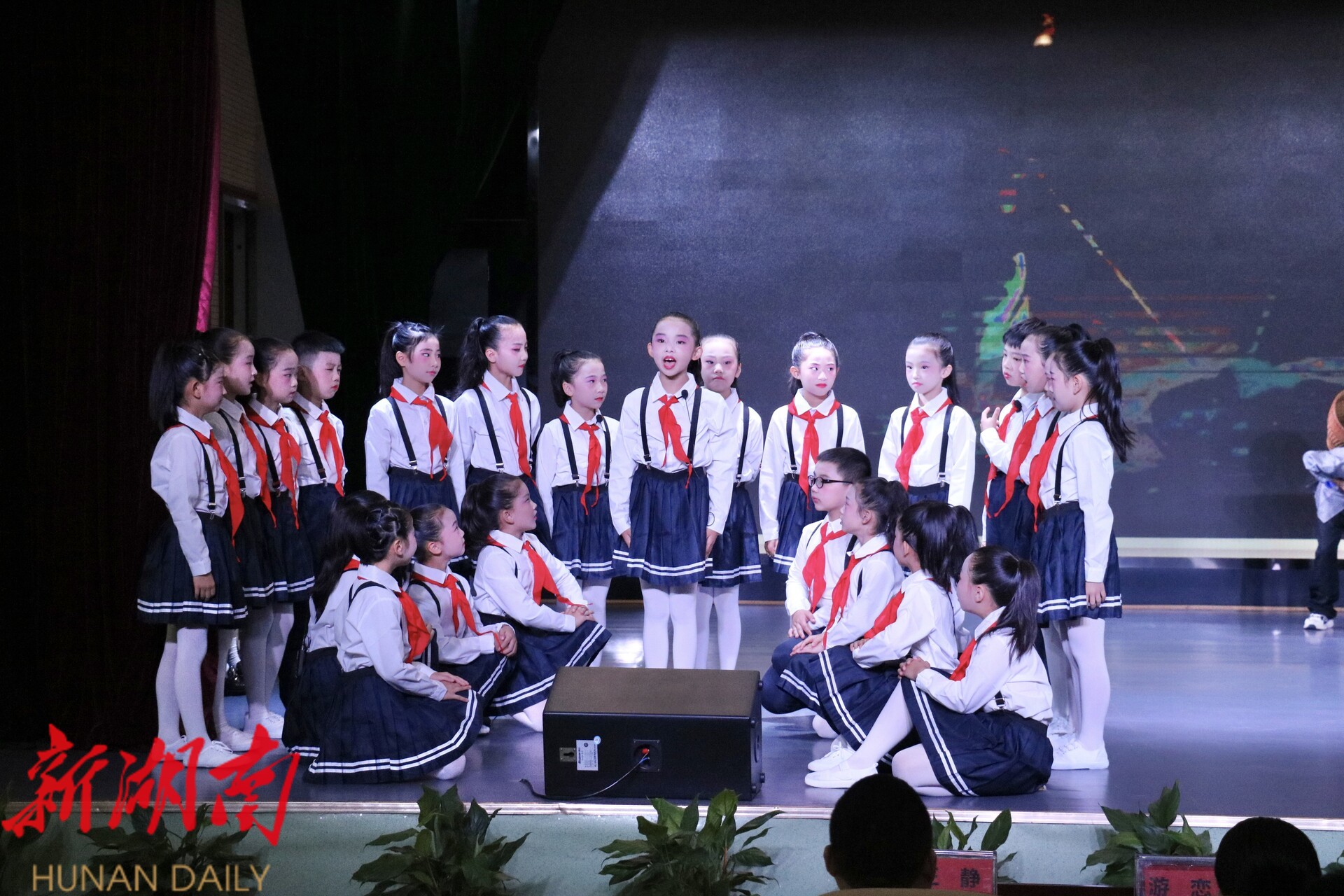 活动在庄严的升旗仪式中拉开帷幕。“传承红色基因,争做时代新人……”升旗仪式后,学生们高举右拳集体宣誓。随后,永定区湘鄂川黔革命根据地纪念馆讲解员带来红色故事《去看一棵红军树》。接着,学生们化身“小小表演者”,带来了情景表演《红领巾的由来》,生动再现红领巾与革命历史的紧密联系;舞蹈《银匠爷爷打银忙》则将非遗银匠技艺搬上舞台,在灵动舞姿中展现劳动之美与传统文化魅力。活动最后,顺笛合奏《我的祖国》奏响全场,悠扬的乐声回荡在校园,师生们跟着旋律轻声哼唱,用音乐传递对祖国的热爱与祝福。