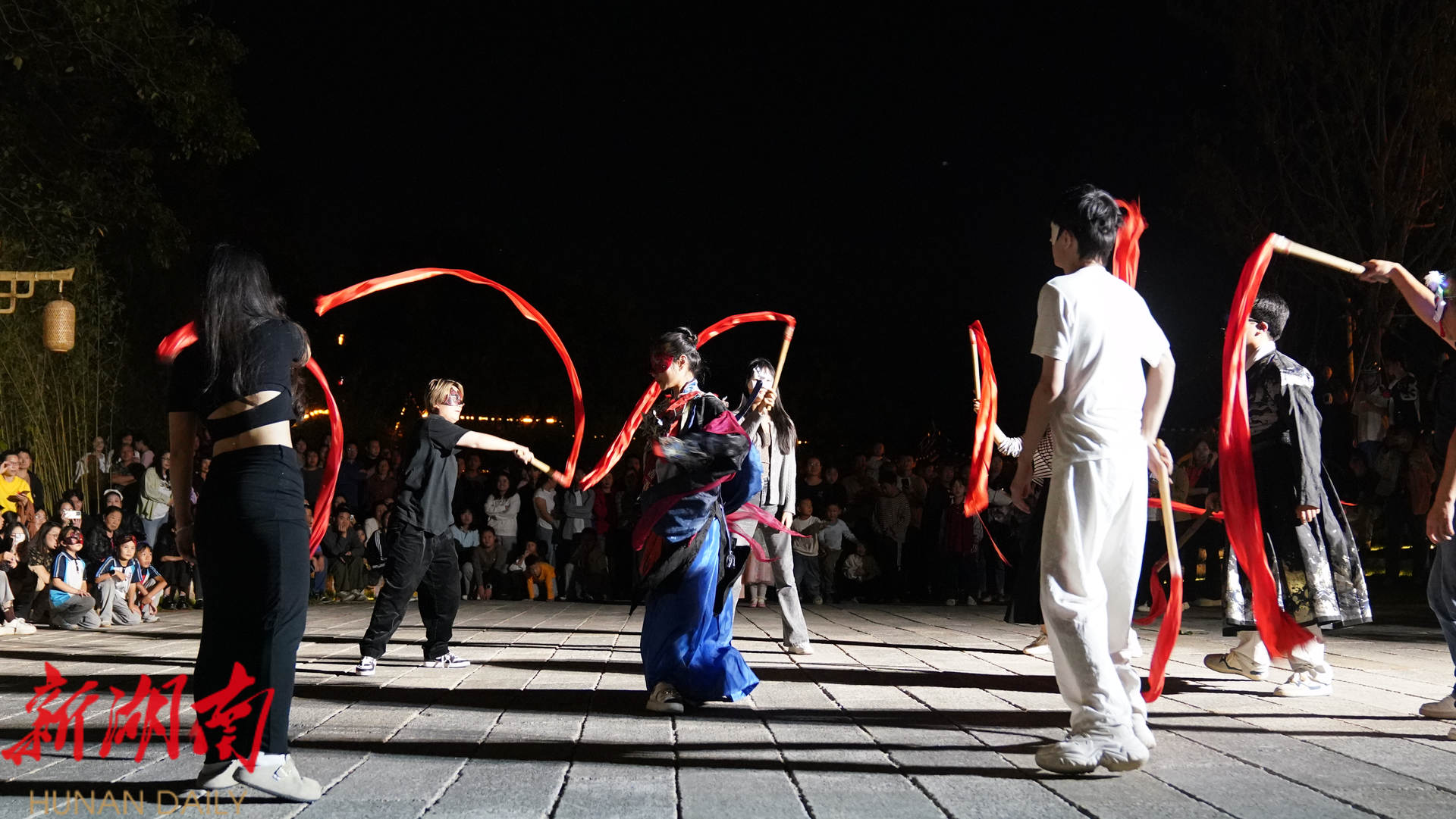 中方融媒9月27日讯 (记者:石端 张言)9月26日晚,中方县荆坪古村大乐元音广场灯火璀璨,“荆坪古村·秘境之夜”假面主题互动舞会精彩上演。这场以“当古老遇见现代、当仙侠遇见巫傩”为主题的活动,将传统文化底蕴与现代狂欢氛围巧妙融合,吸引周边区域市民、年轻群体及家庭客群前来参与。