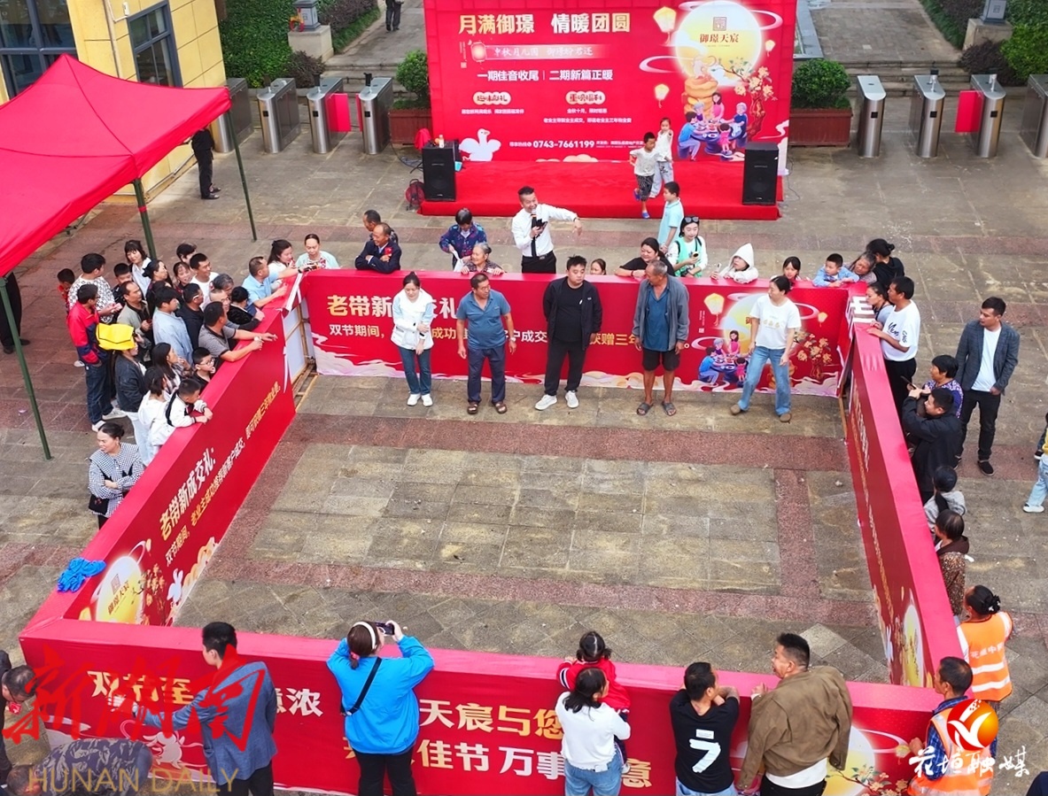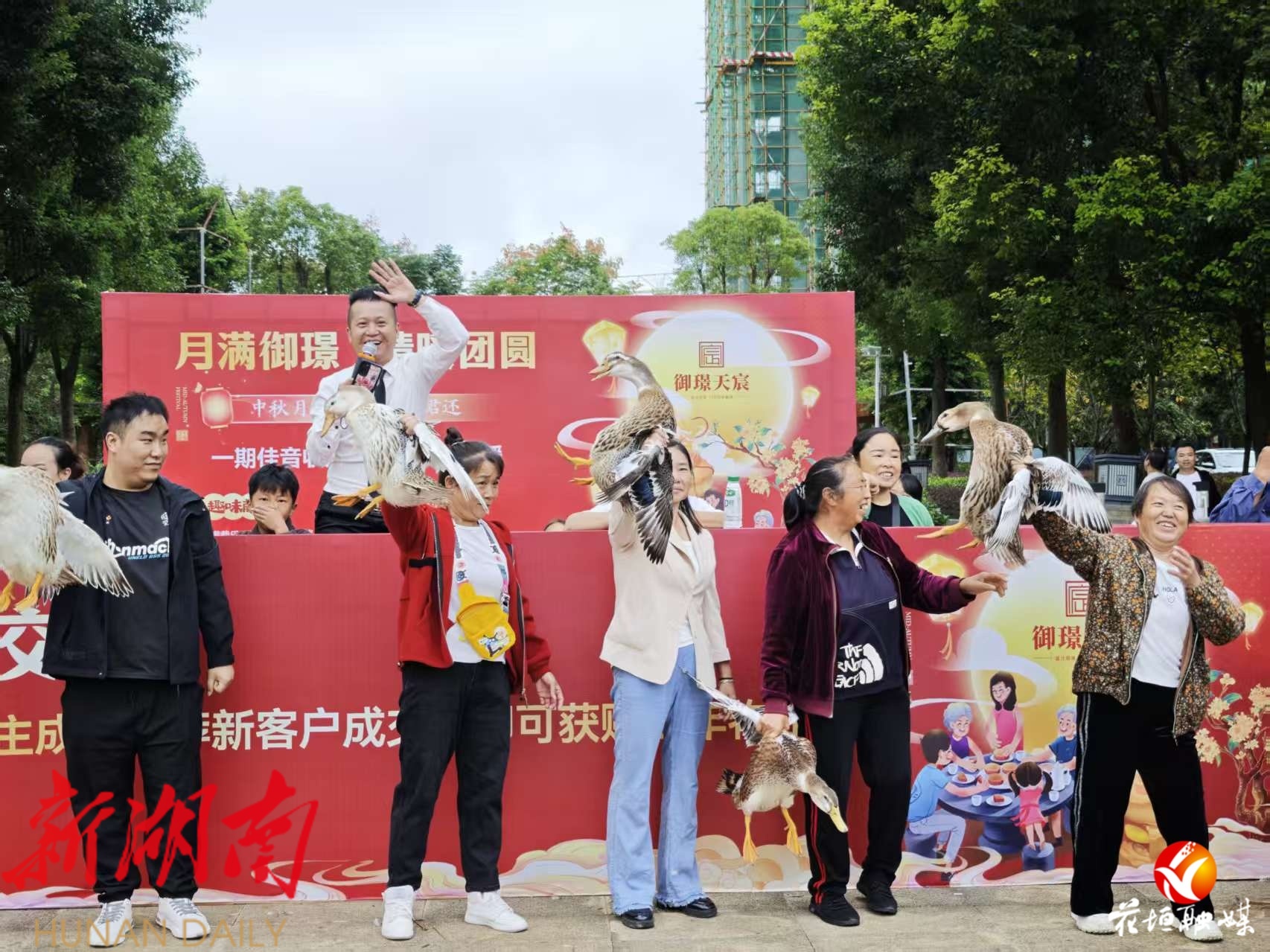 湖南日报·新湖南客户端9月27日讯(通讯员 张庆港 林彬)“双节”将至,为营造欢乐祥和的节日氛围,今天上午,花垣县御璟天宸小区精心策划并举办以“中秋月儿圆,御璟盼团圆”为主题的抓鸭喜乐会活动,现场气氛热烈,吸引众多业主携家人踊跃参与。