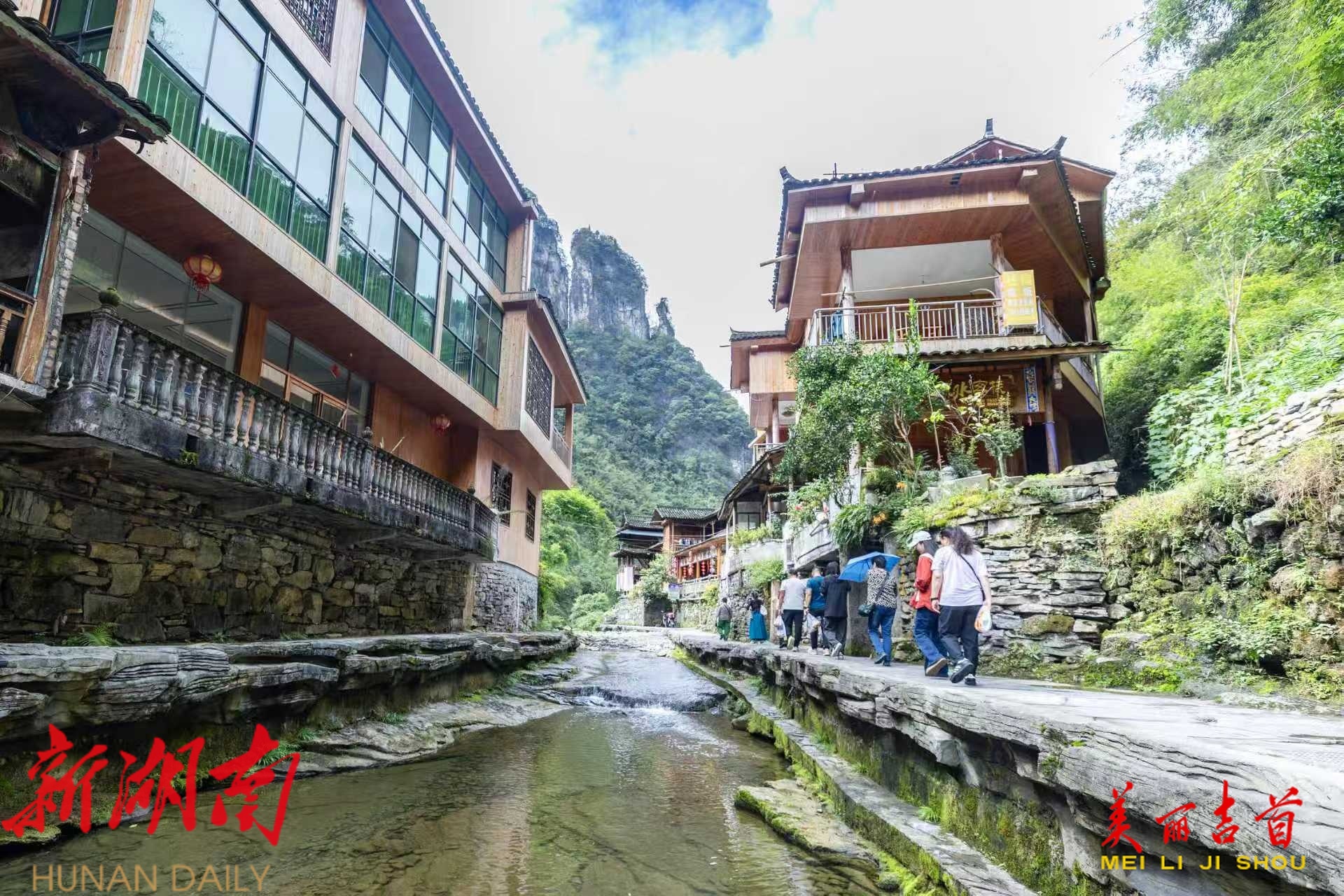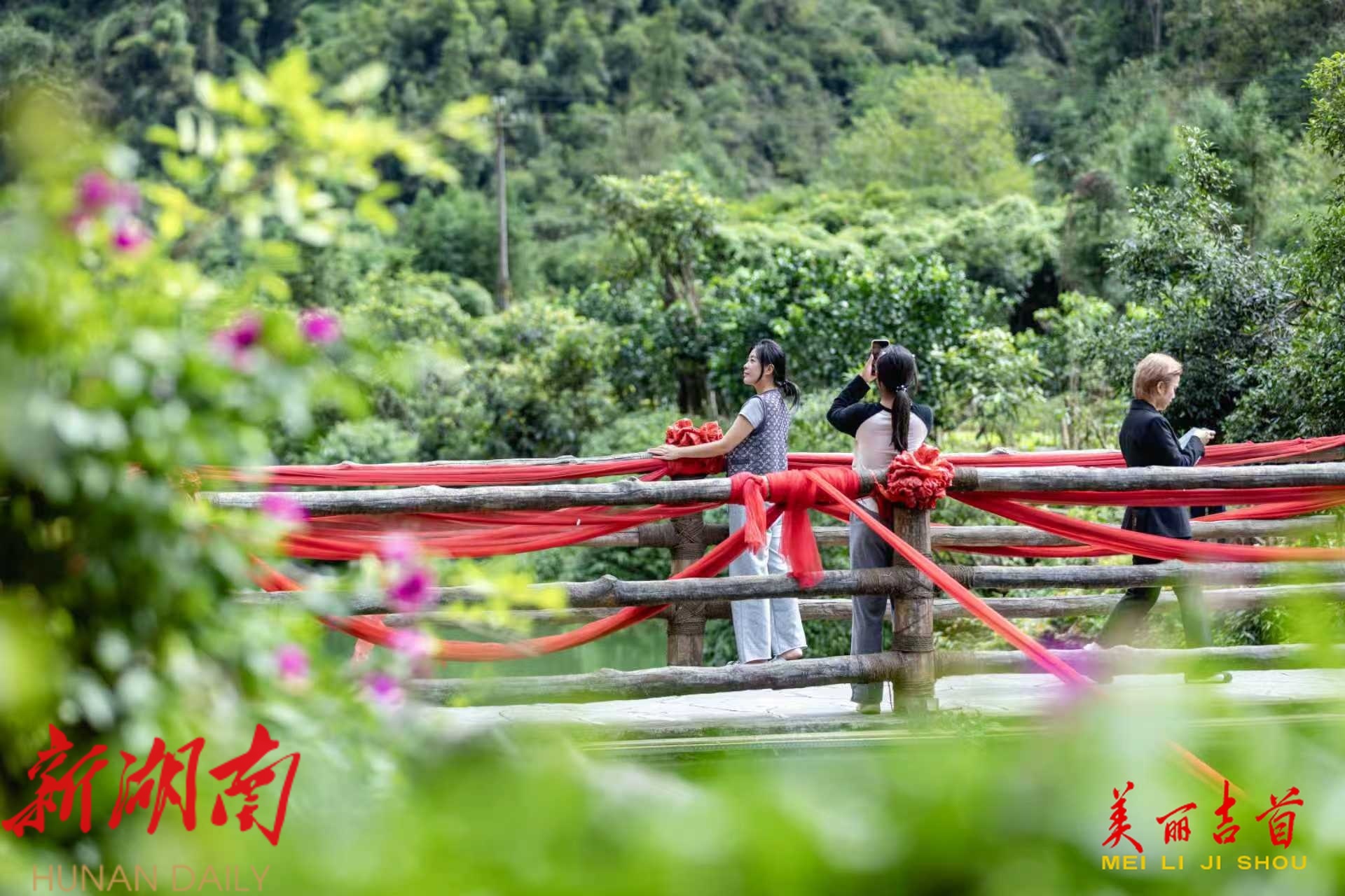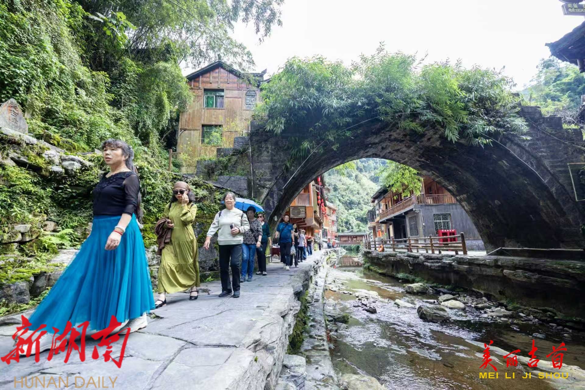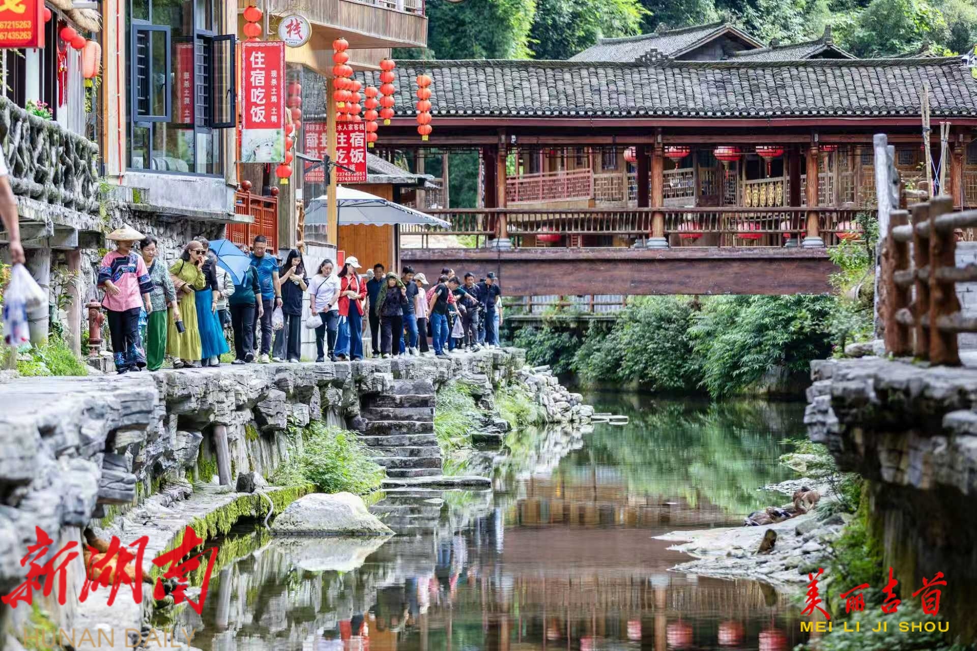 吉首市融媒体中心9月27日讯(全媒体记者 彭璟)9月27日,吉首市矮寨奇观旅游区,游客在德夯苗寨游玩。当日是“世界旅游日”,人们亲近自然、乐享山水。随着国庆、中秋双节临近,该景区游客增多,旅游逐渐“升温”。