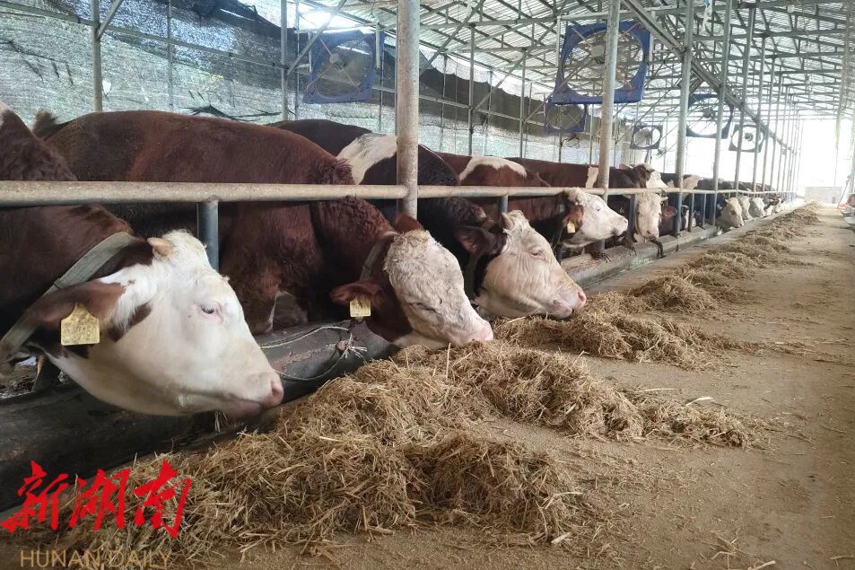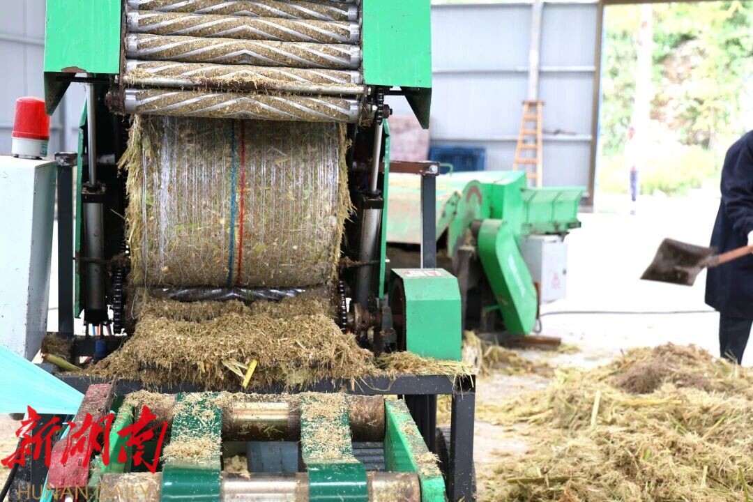 9月25日,位于龙溪铺镇的湖南家肥屋润生物科技有限公司的饲料加工车间内,秸秆粉碎机、裹包机的轰鸣声此起彼伏,工人们忙着将收集来的废弃秸秆粉碎打包。经过青贮、氨化加工,这些秸秆华丽转身,成为公司130多头西门塔尔肉牛的舌尖“美食”。