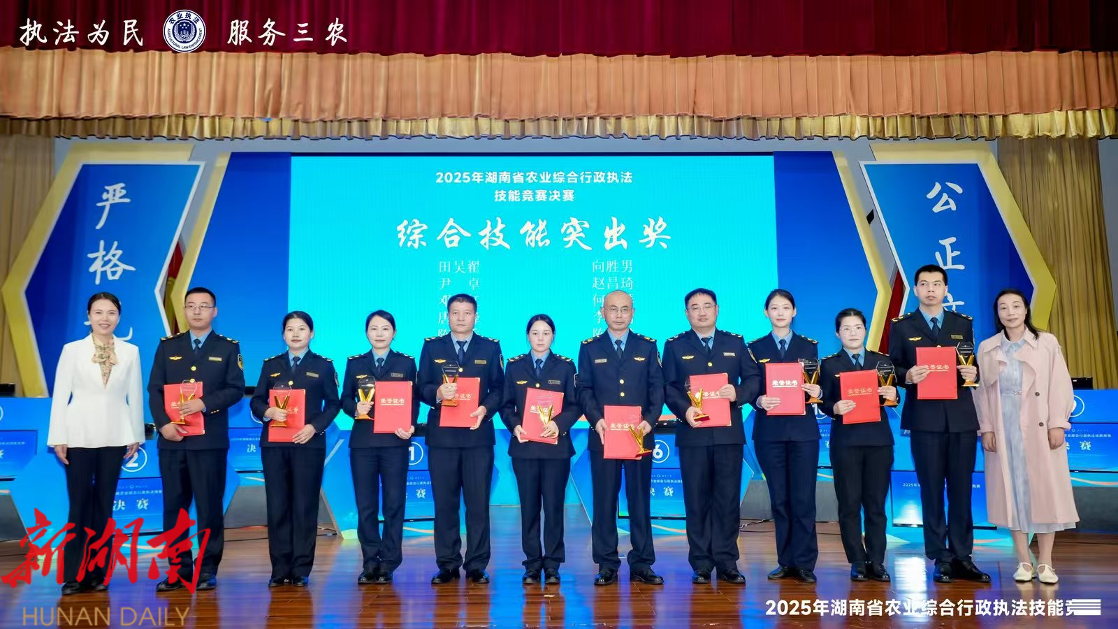 新新邵客户端9月26日讯(通讯员 邓向群 刘雄彦)9月25日,全省农业执法技能竞赛圆满落幕,新邵县农业综合行政执法大队邓永红同志凭借扎实的专业素养与出色的实战能力,在众多参赛选手中脱颖而出,荣获综合技能突出奖;同时,其所在邵阳市代表队协作攻坚、奋勇争先,成功斩获团体二等奖。