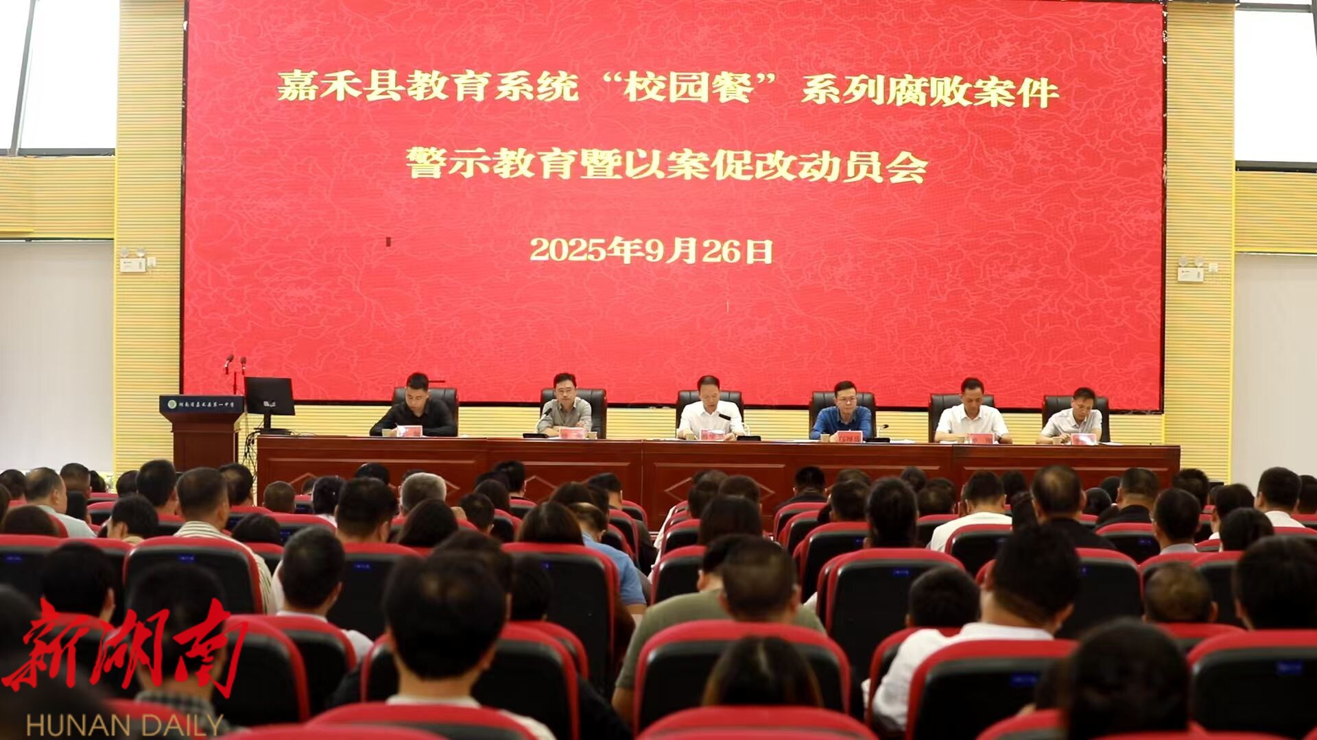 铸都嘉禾客户端9月28日讯(通讯员 李沛 李燕)9月26日,嘉禾县教育系统“校园餐”系列腐败案件警示教育暨以案促改动员会召开。县委副书记、县委统战部部长蒋中平,县委常委、县纪委书记、县监委代理主任邝厚涛出席会议并讲话。副县长徐剑主持会议。 县教育局全体干部职工、各公办学校班子成员、各民办学校(幼儿园)负责人等240余人参加会议。