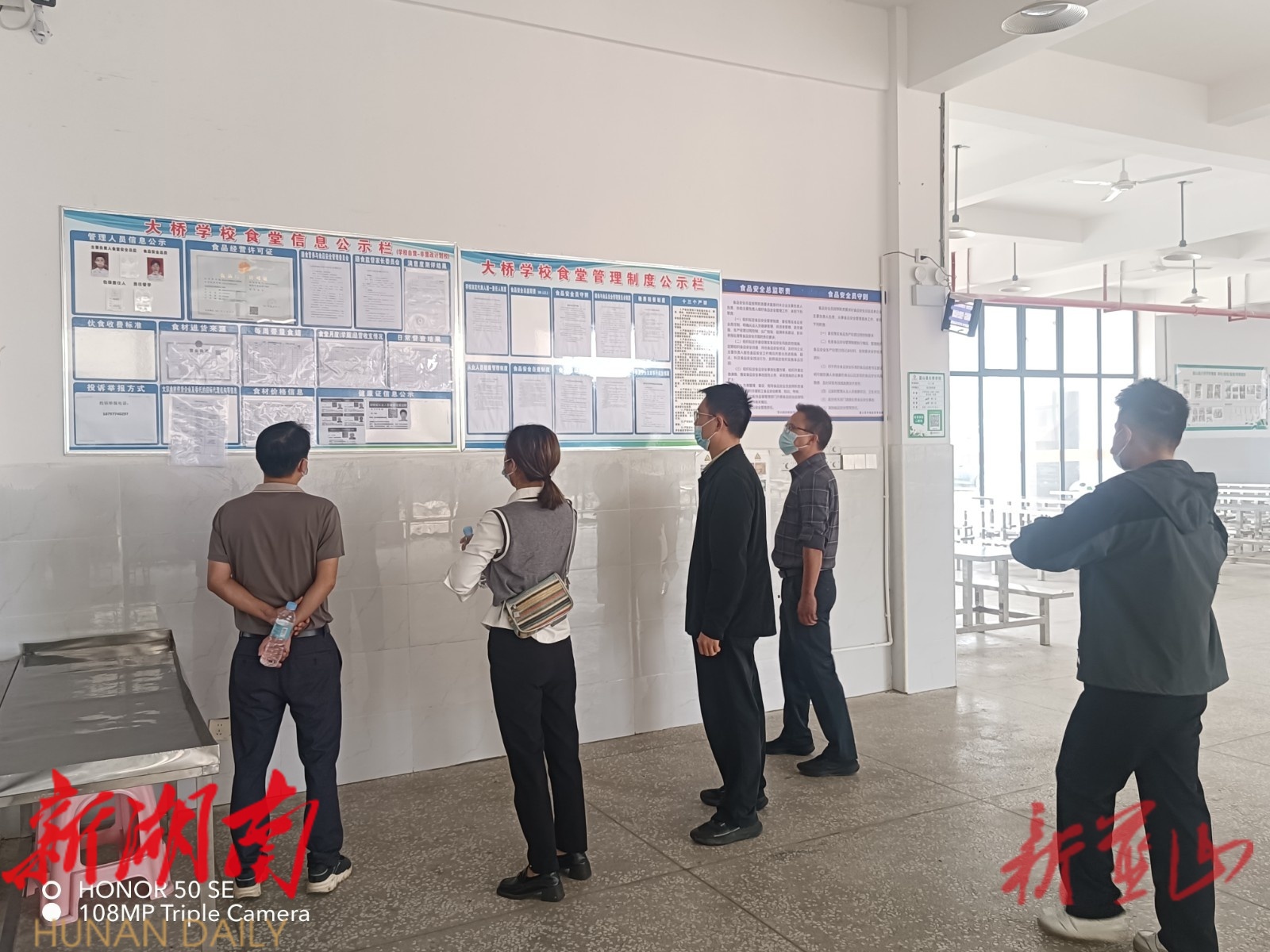 人大代表们仔细查看了“大桥学校食堂信息公示栏”与“大桥学校食堂管理制度公示栏”,详细了解食堂管理人员信息、食品经营许可证、收费标准、投诉举报方式等内容,对学校食堂信息公开透明化工作表示认可。