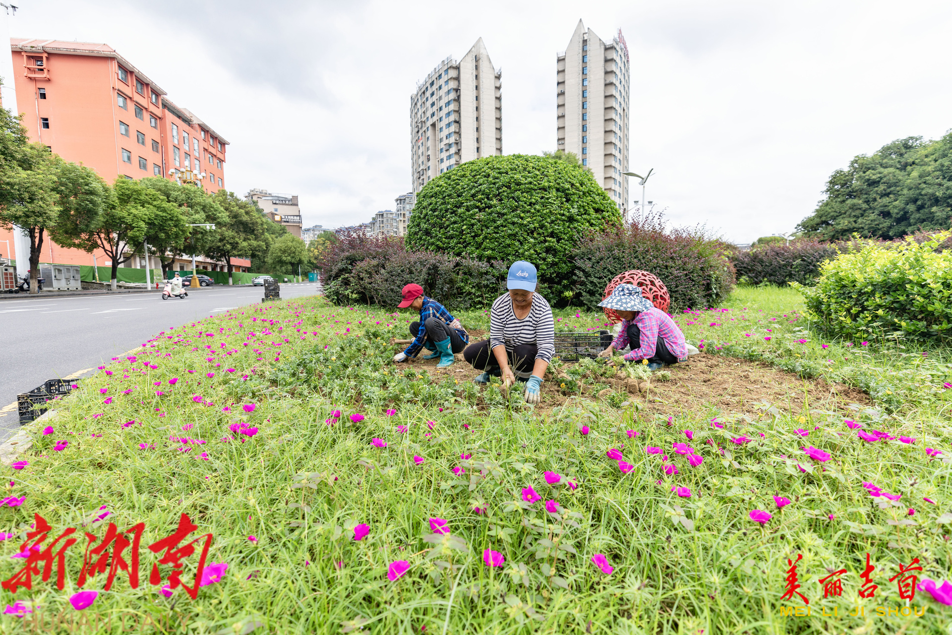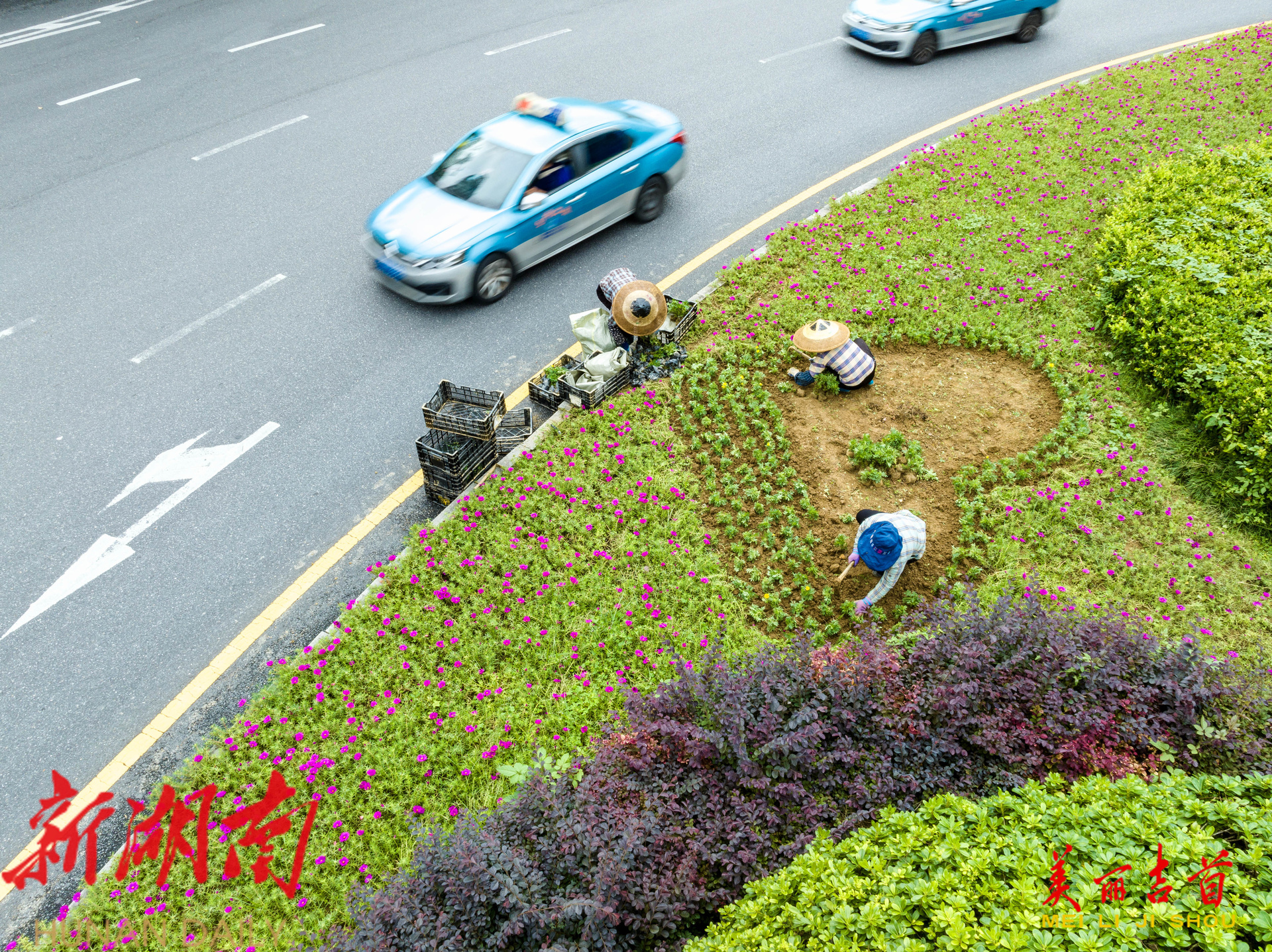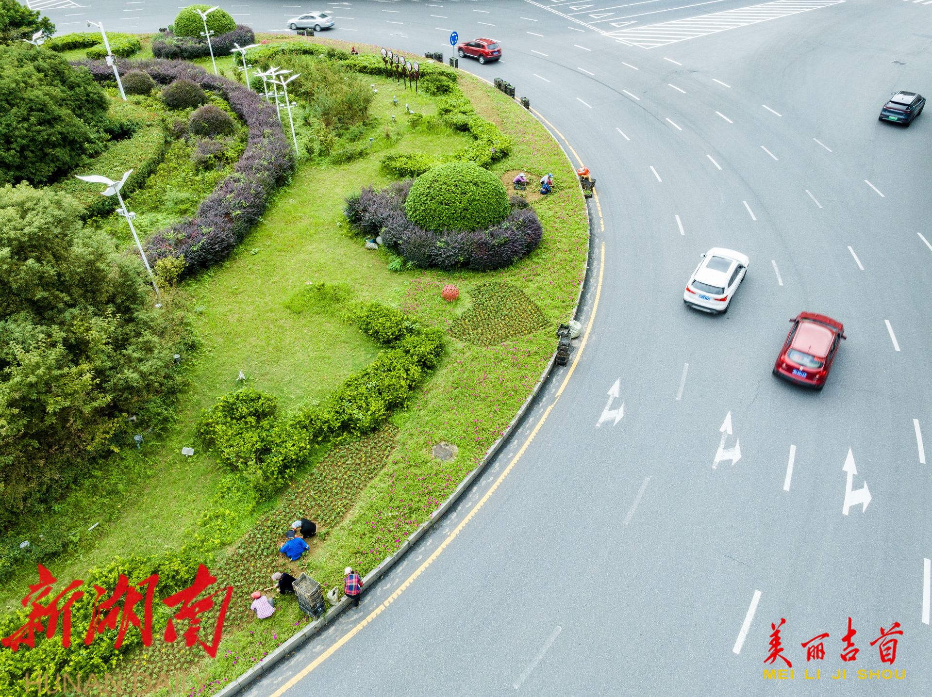 吉首市融媒体中心9月28日讯(全媒体记者 彭璟) 2025年9月27日,吉首市乾州街道世纪大道,工人在环岛栽种花卉。国庆、中秋双节将至,该市园林部门在城区主干道、公园布置鲜花和绿植,以靓丽的城市景观喜迎佳节。