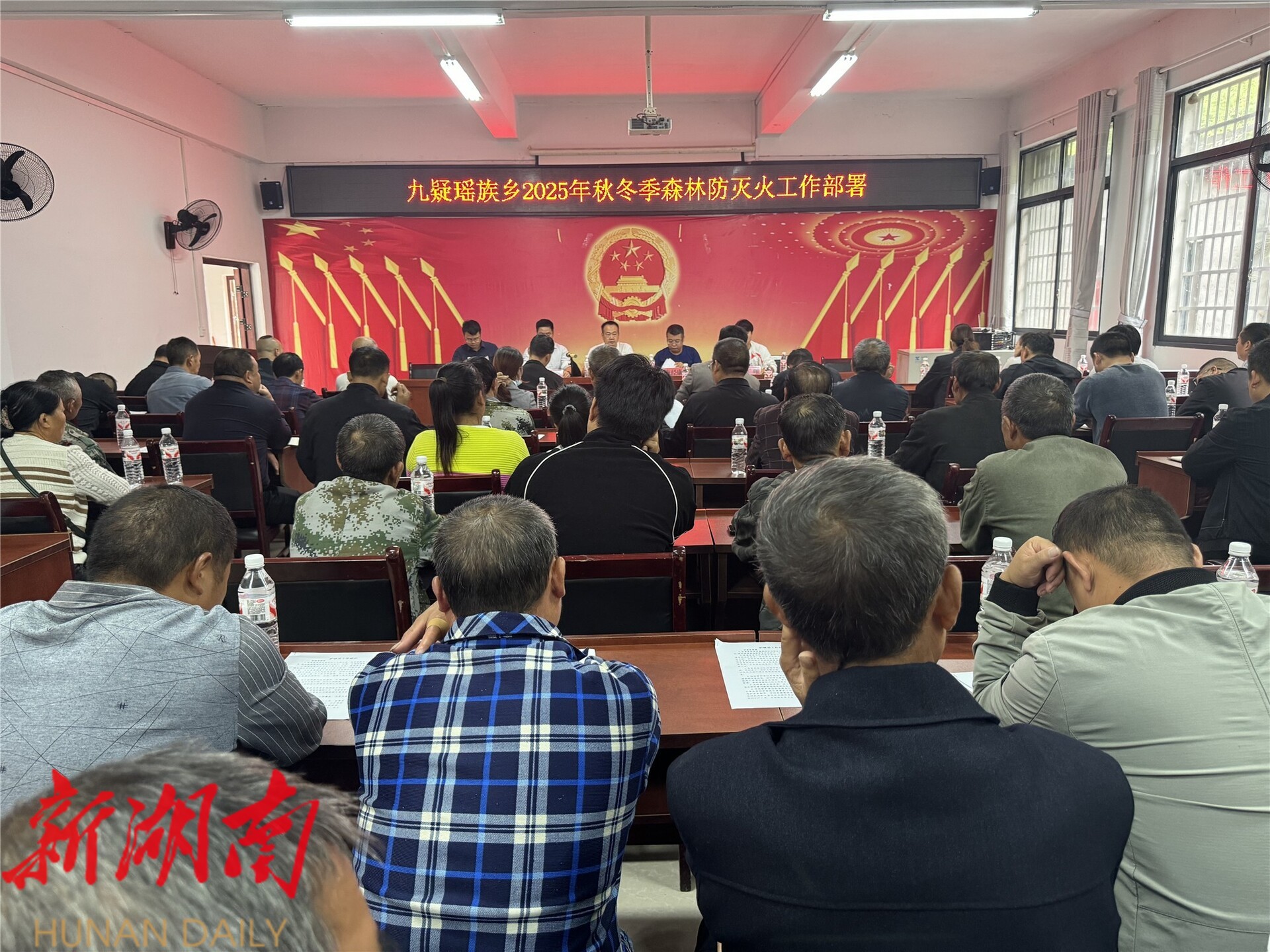 湖南日报·新湖南客户端9月28日讯(通讯员 朱奇琪) 近日 ,宁远县九疑瑶族乡组织召开2025下半年森林防灭火工作会议,全乡21个行政村党支部书记、林长制护林员、半专业扑火队队长和副队长、专职巡逻员等100余人参加会议。
