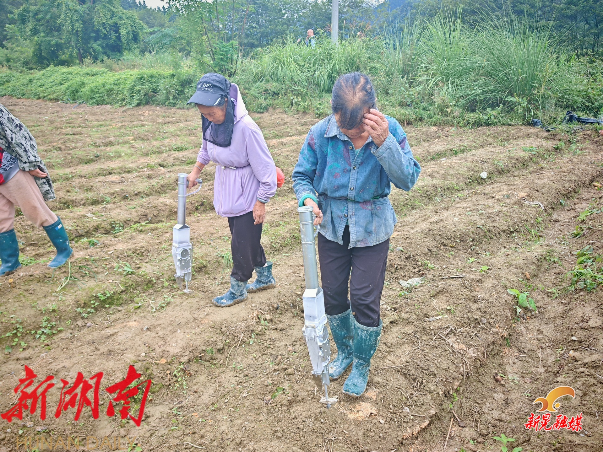 在扶罗镇东风村种植基地,村民们手持特制的播种工具,沿着划好的浅沟,以恰到好处的间距和深度,将褐色的榨菜种子点入土中,现场呈现出一派繁忙的景象。